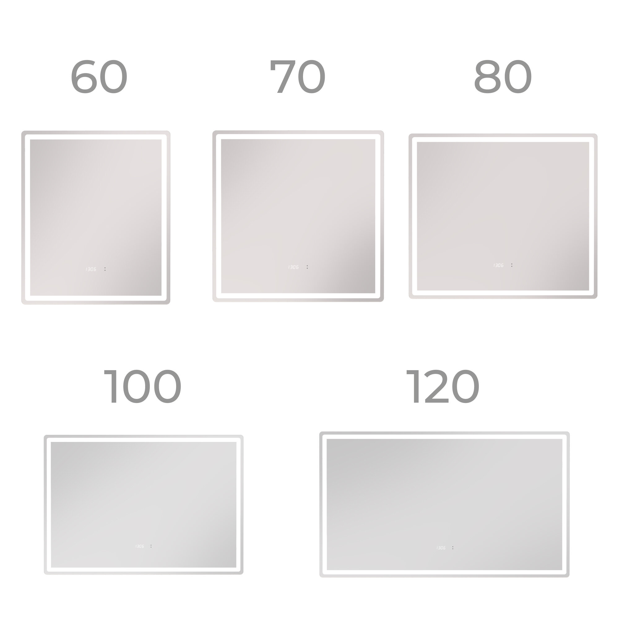 Зеркало с подсветкой в ванную 60х70 см Geometry Luxe с бесконтактным включением на взмах подогревом и часами 5000К