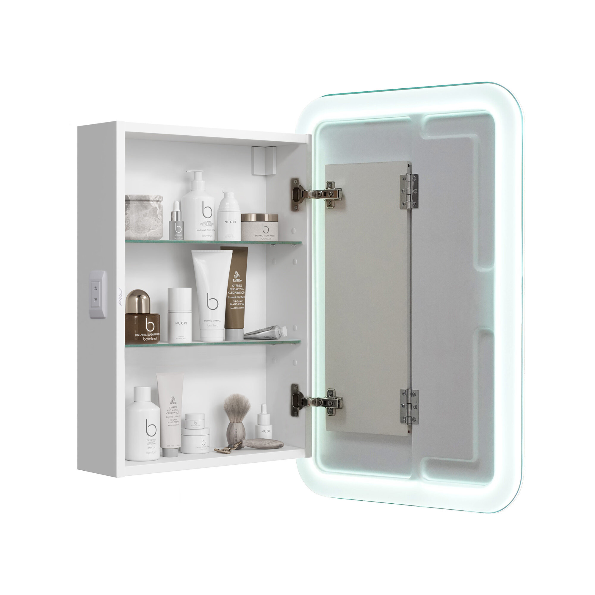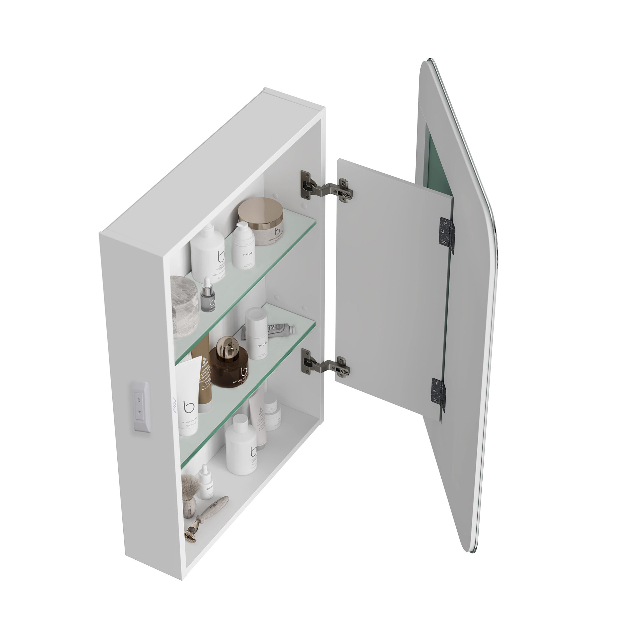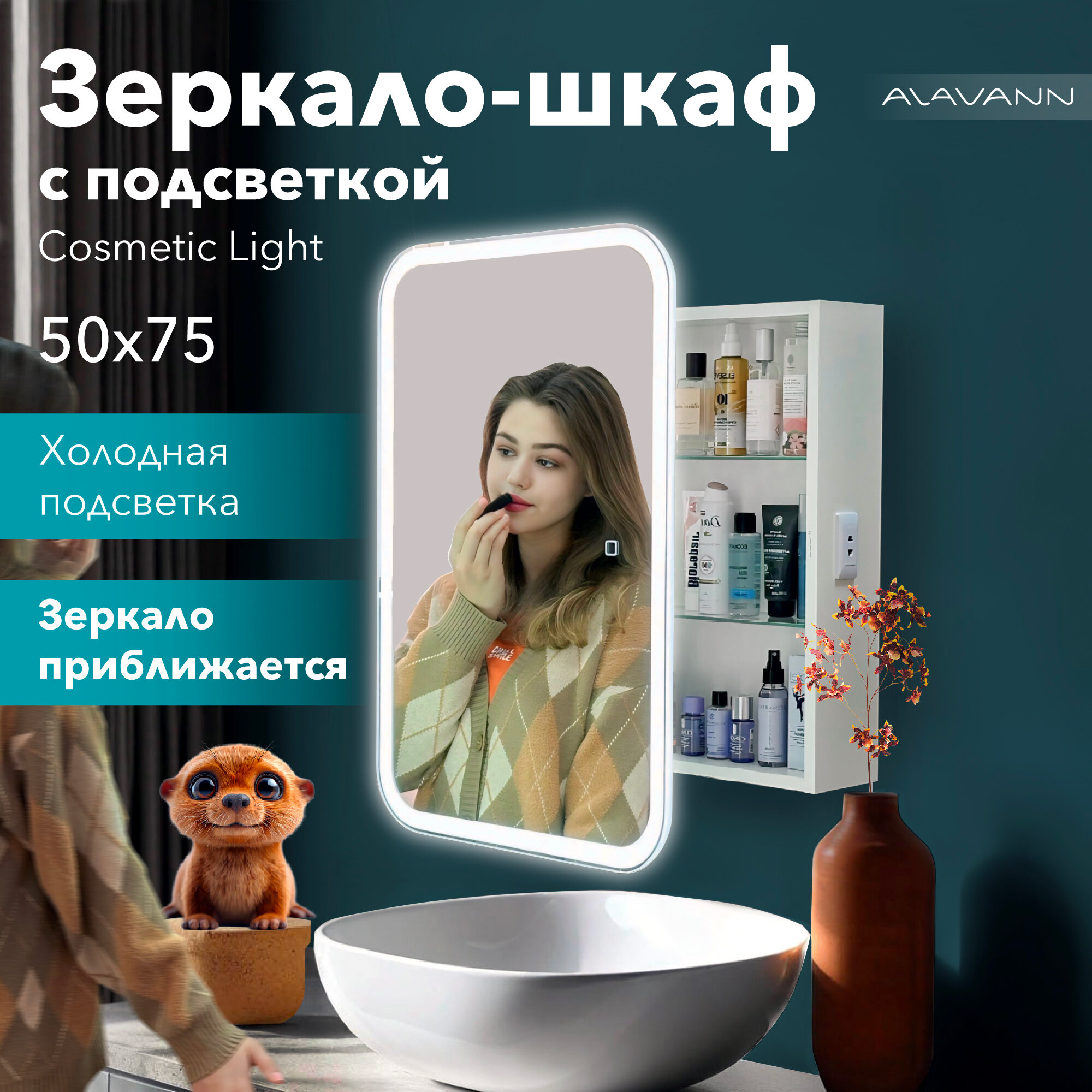Зеркало-шкаф для ванной Alavann Cosmetic 50 см, с приближением фасада (зеркала) к лицу, левый/правый, белый