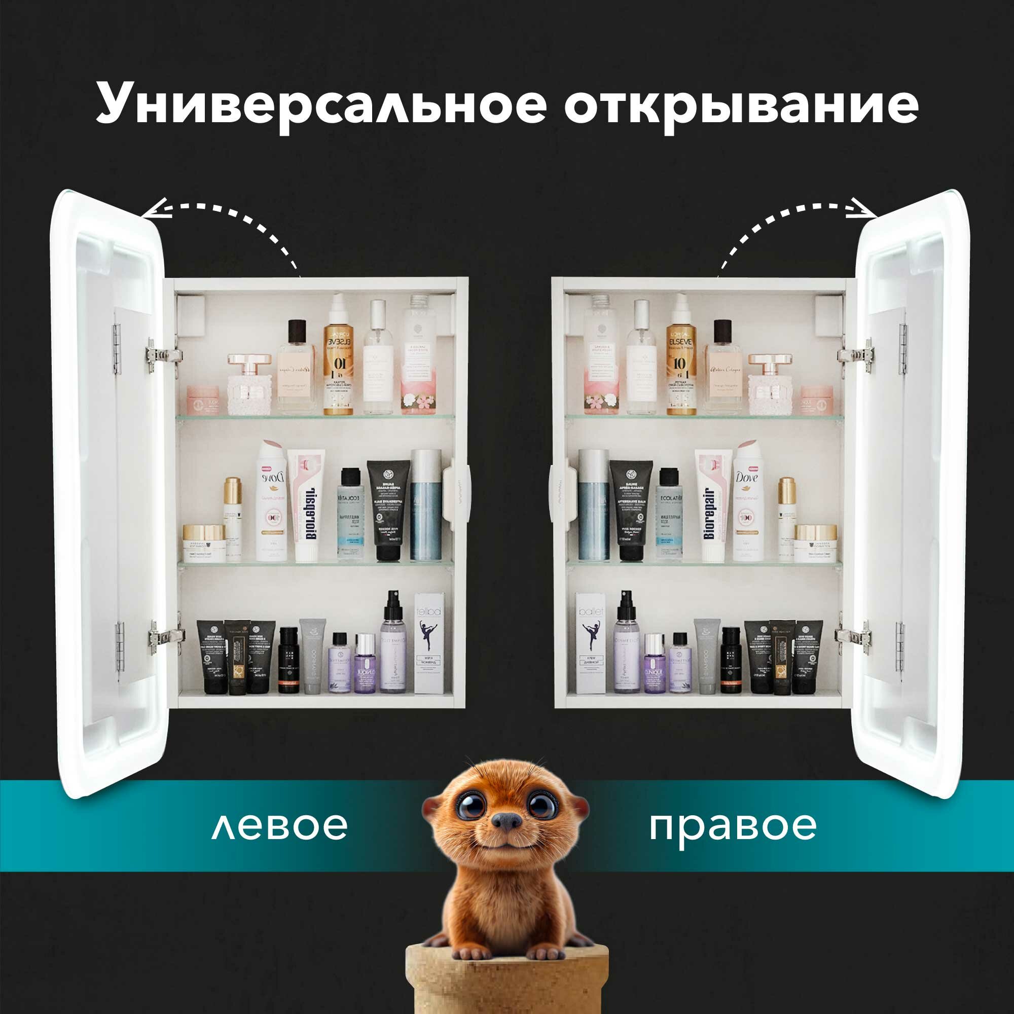 СохранитьЗеркало-шкаф Cosmetic Light 50x75 см с приближением и подсветкой, в ванную, навесной интересное: