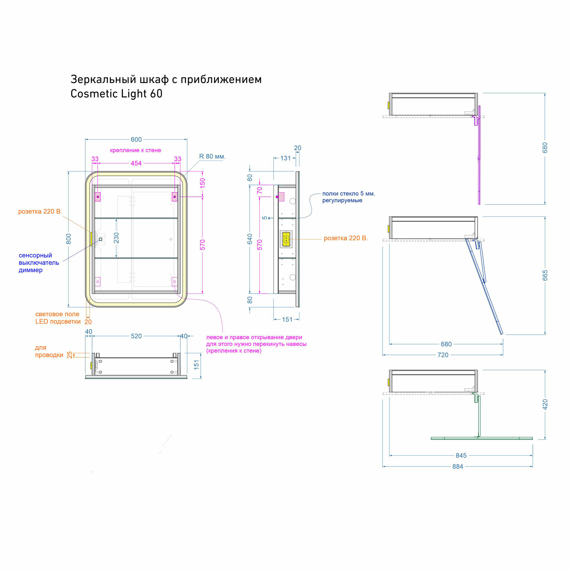 СохранитьЗеркало-шкаф Cosmetic Light 60x80 см с приближением и подсветкой, в ванную, навесной интересное: