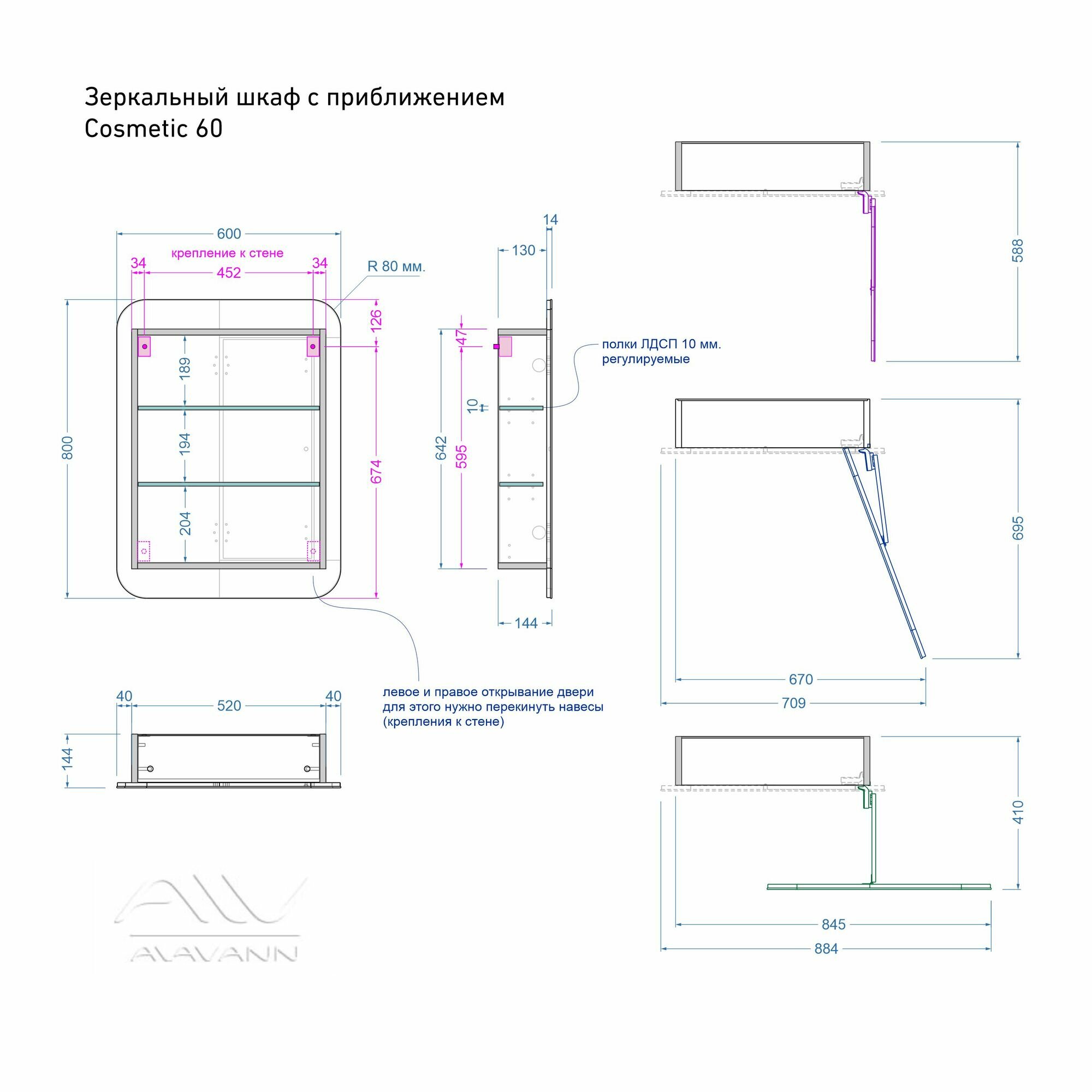 СохранитьЗеркало-шкаф для ванной Alavann Cosmetic 60 см, с приближением фасада (зеркала) к лицу, левый/правый, белый интересное: