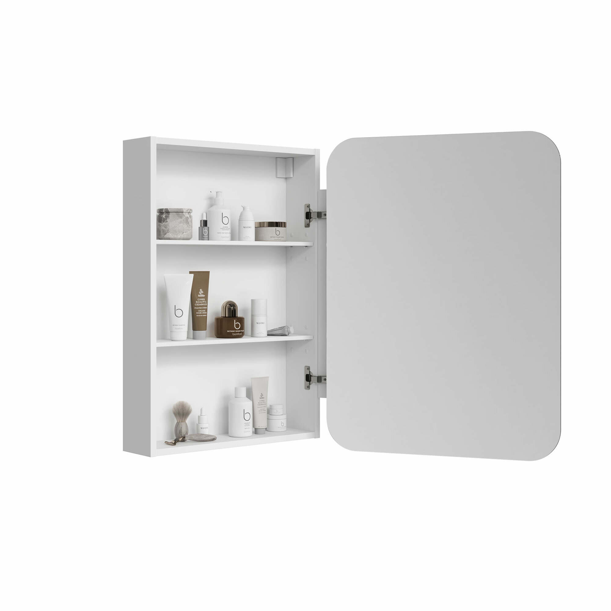 Зеркало-шкаф для ванной Alavann Cosmetic 50 см, с приближением фасада (зеркала) к лицу, левый/правый, белый