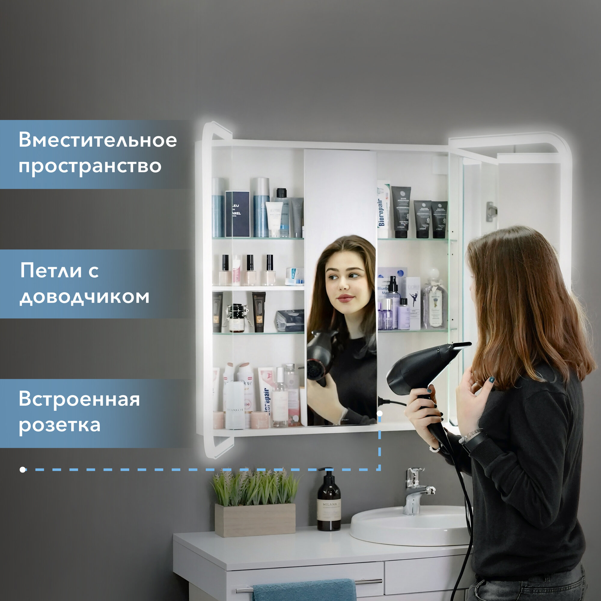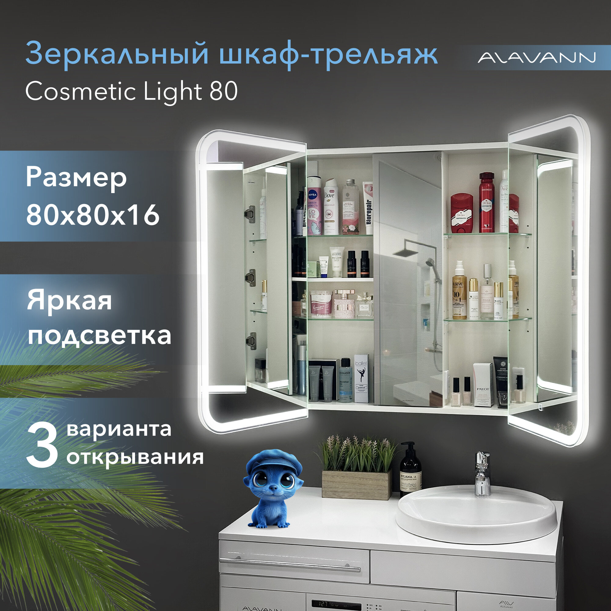 Зеркальный шкаф-трюмо Alavann Cosmetic 80 см, с приближением фасада, в ванную комнату, навесной