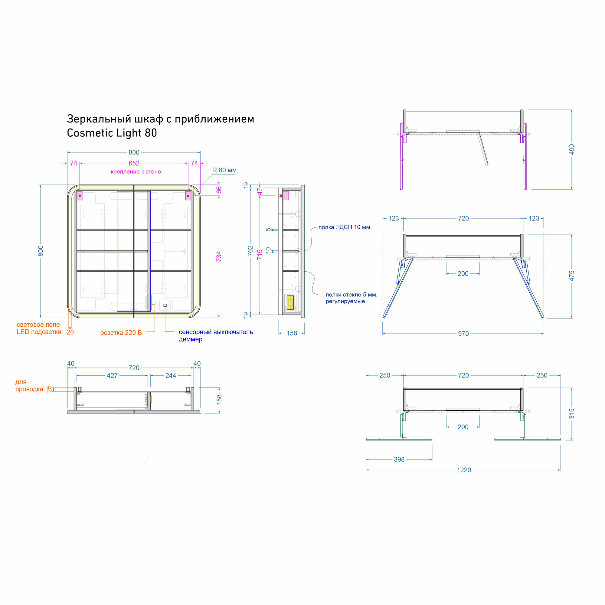 СохранитьЗеркало-шкаф трюмо Cosmetic Light 80x80 с подсветкой и приближением, в ванную, навесной интересное: