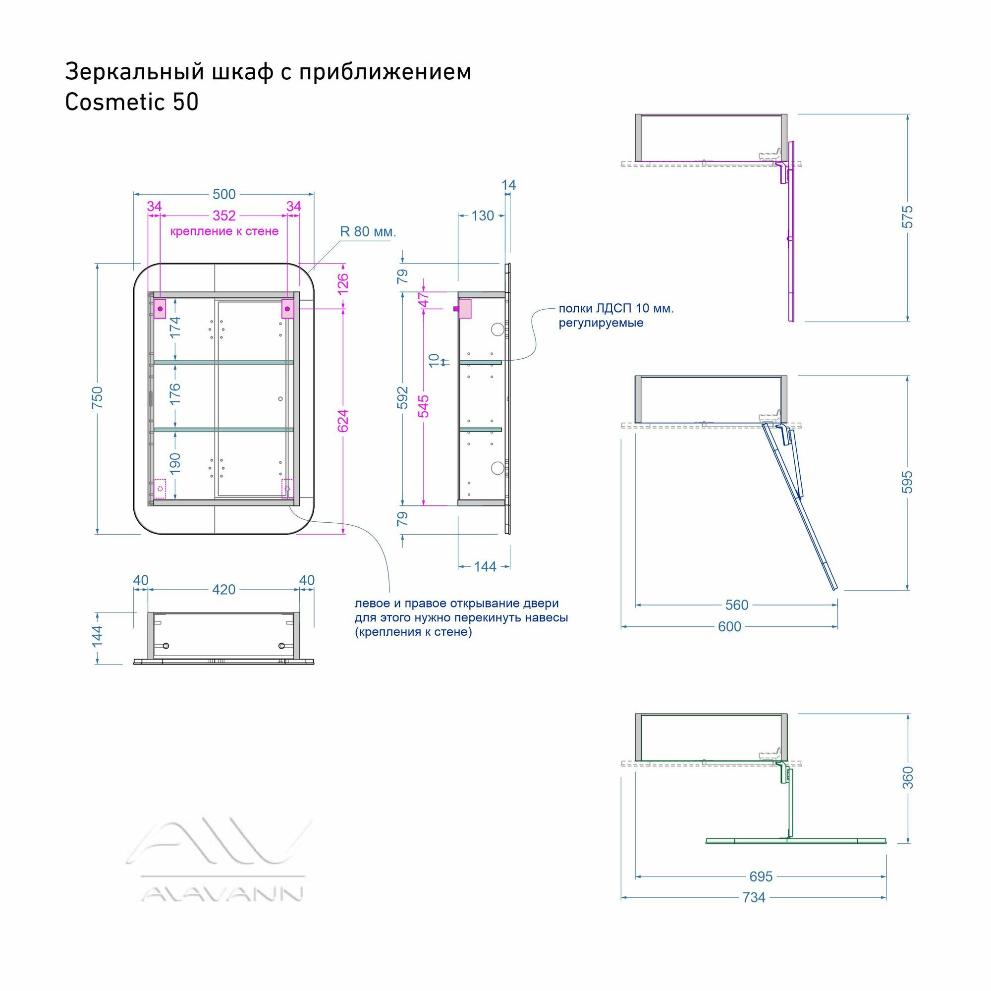 СохранитьЗеркало-шкаф для ванной Alavann Cosmetic 50 см, с приближением фасада (зеркала) к лицу, левый/правый, белый интересное: