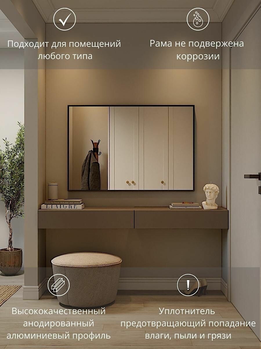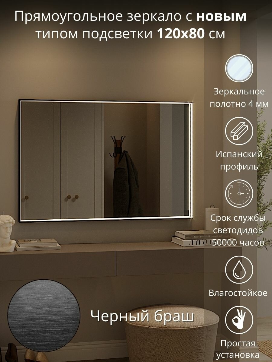 Зеркало настенное с подсветкой черное прямоугольное 120х80 см, TODA ALMA интересное: