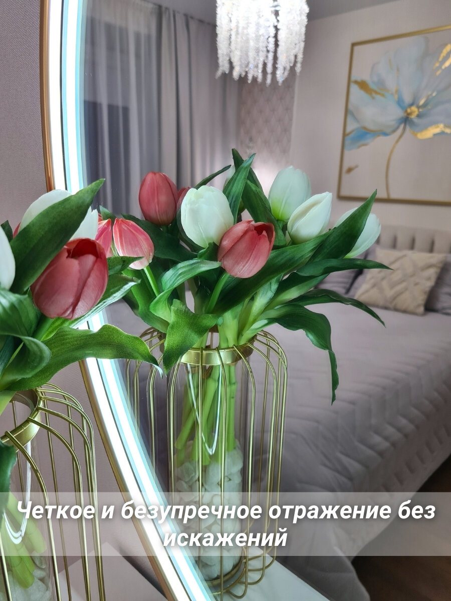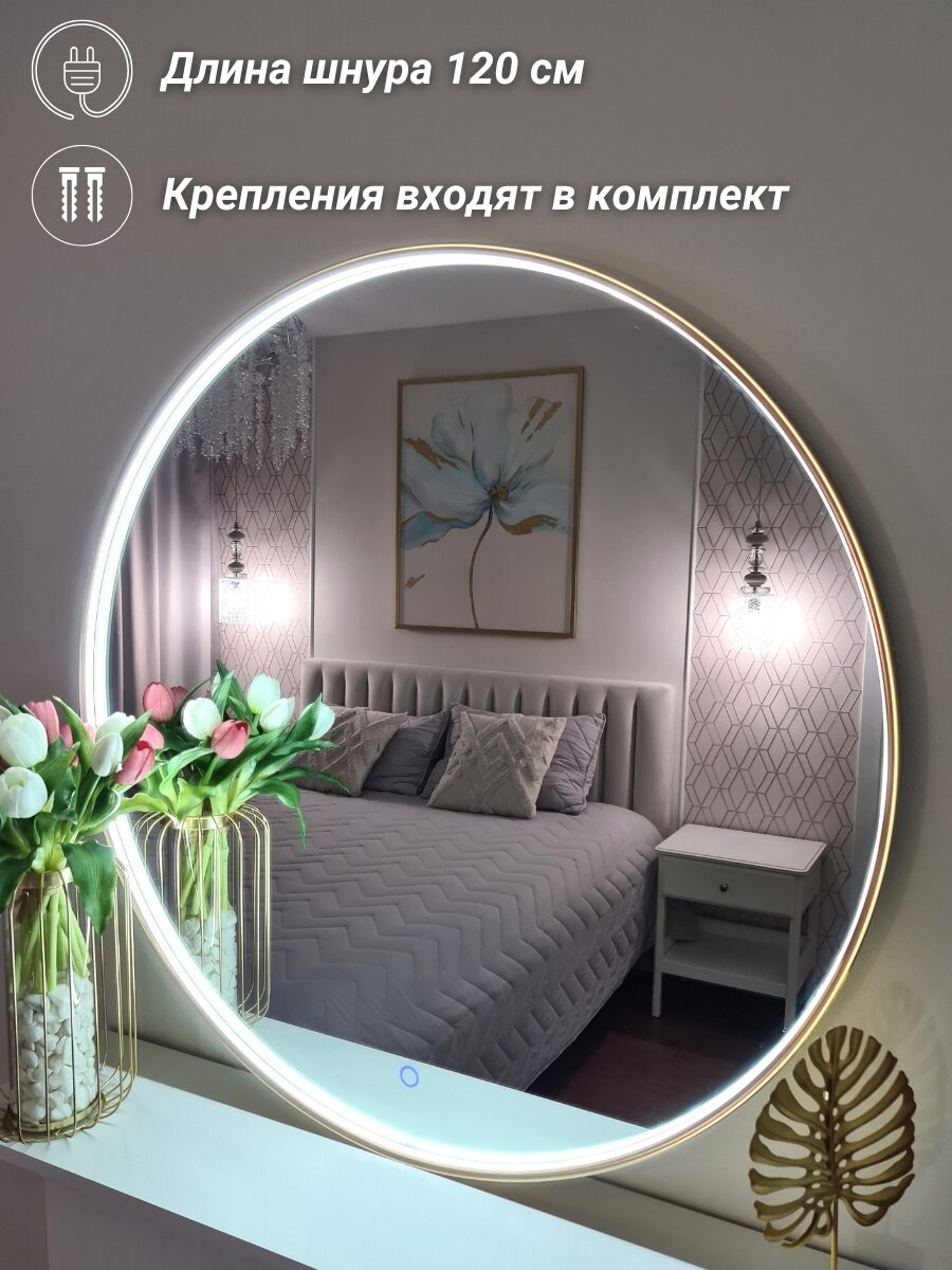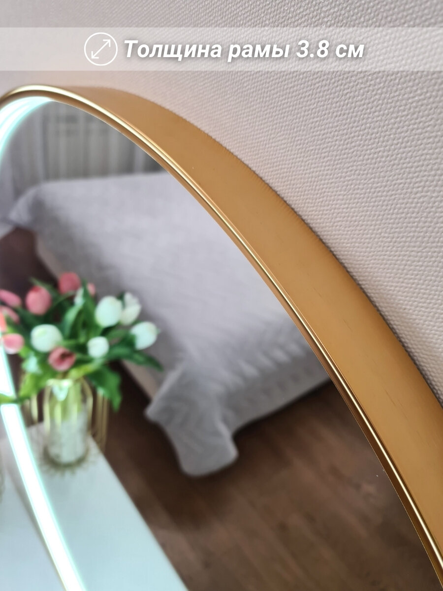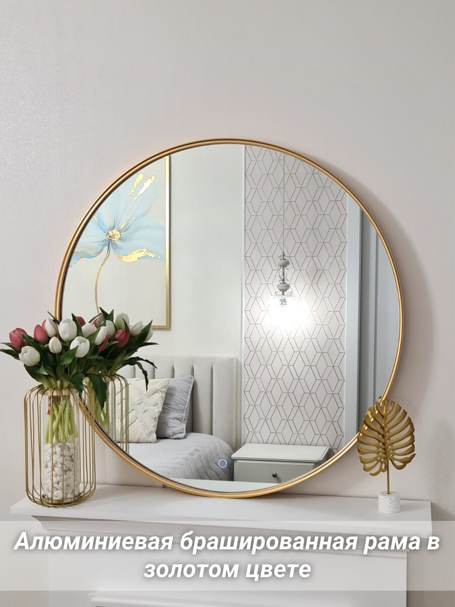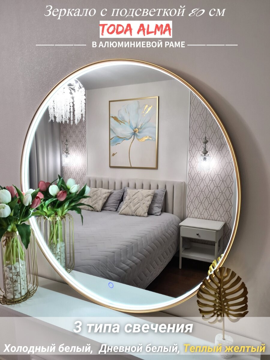 СохранитьКруглое зеркало с подсветкой 80 см в золотой раме в спальню или прихожую, TODA ALMA интересное: