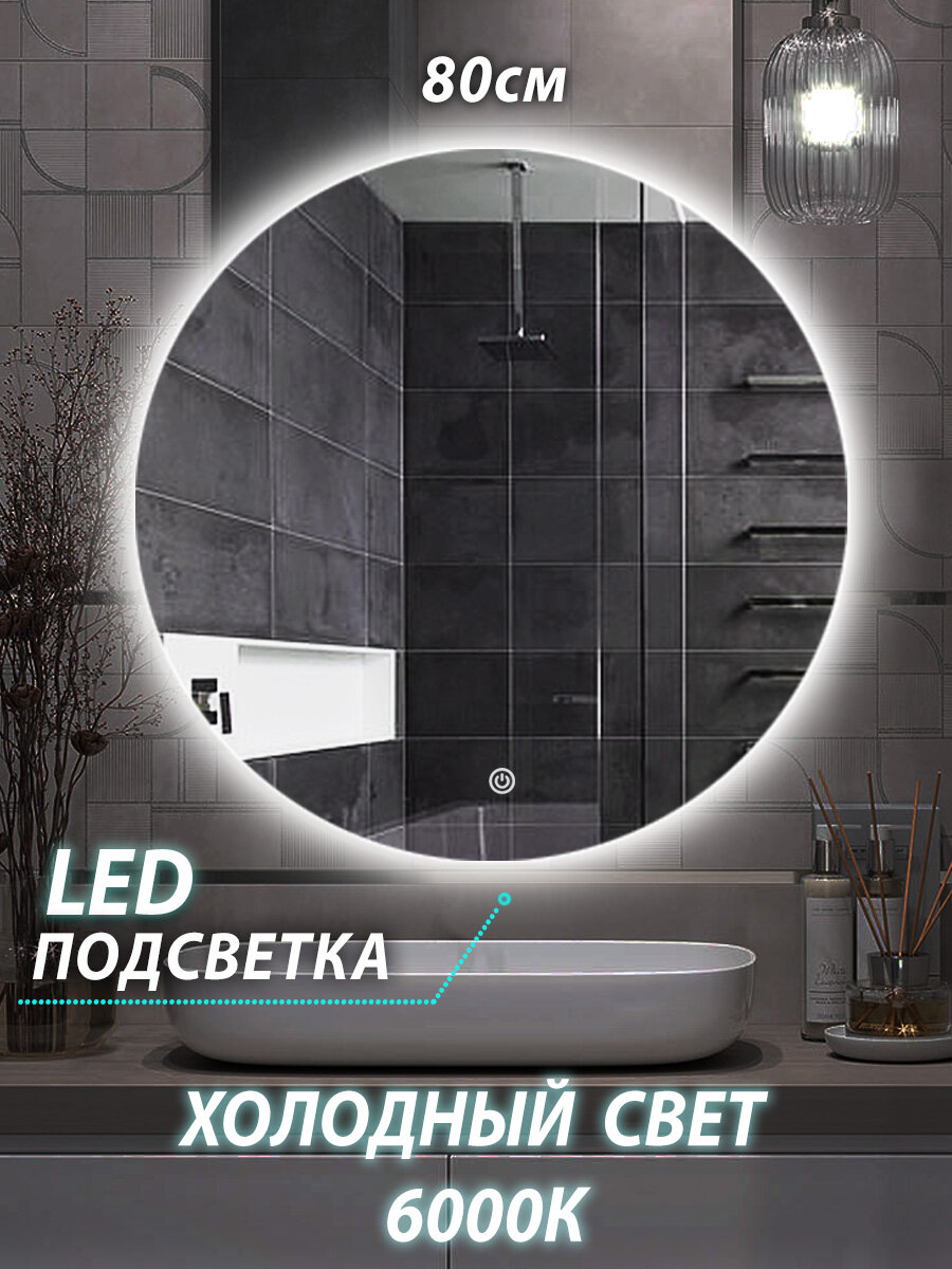 Зеркало настенное для ванной КерамаМане 80*80 см со светодиодной сенсорной холодной подсветкой 6000 К
