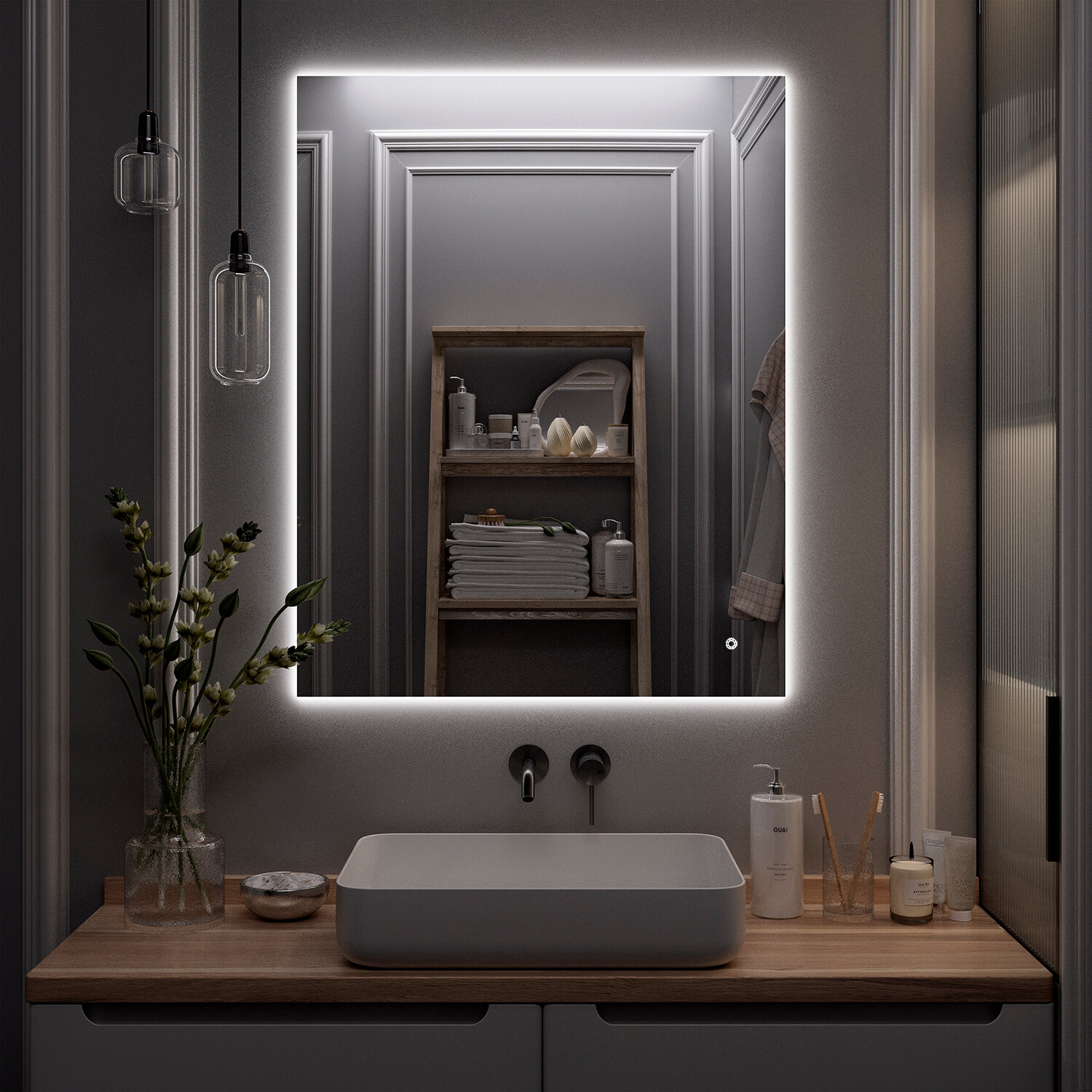 Зеркало настенное с подсветкой SIRIUS 50*60см, 60х50 универсальное , сенсорный выключатель / AQUA DE MARCO