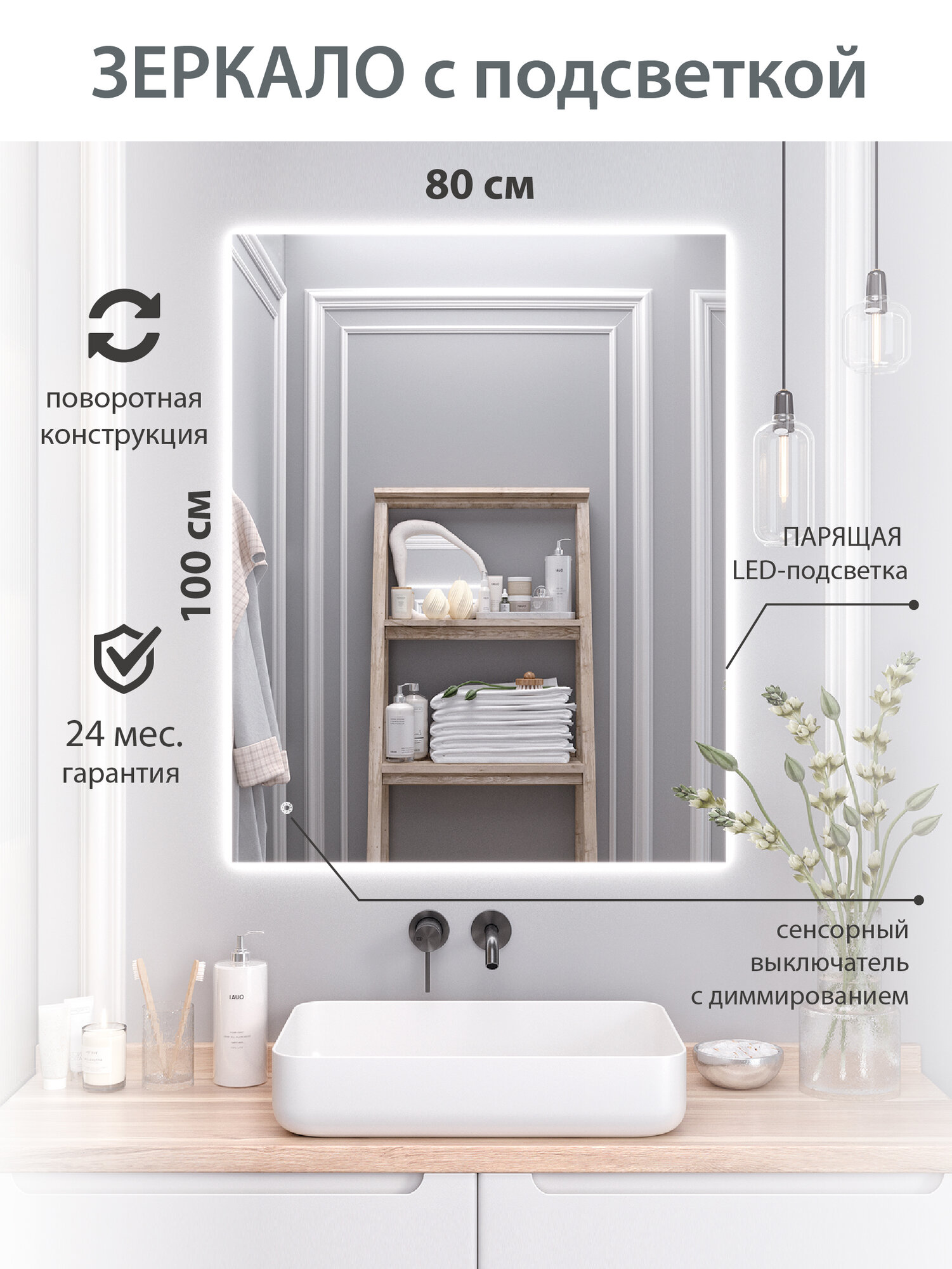 Купить Зеркало настенное с подсветкой SIRIUS 80*100см, 100х80 универсальное , сенсорный выключатель / AQUA DE MARCO