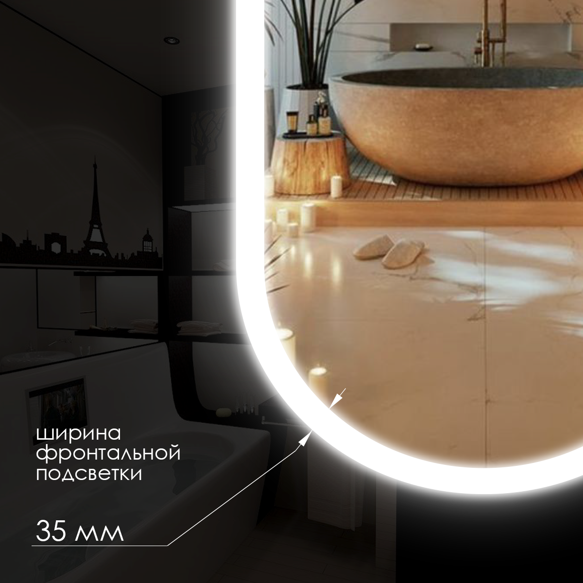 Зеркало для ванной Maskota Elen с нейтральной фронтальной подсветкой, сенсор, диммер, подогрев, IP44, 70х35 см