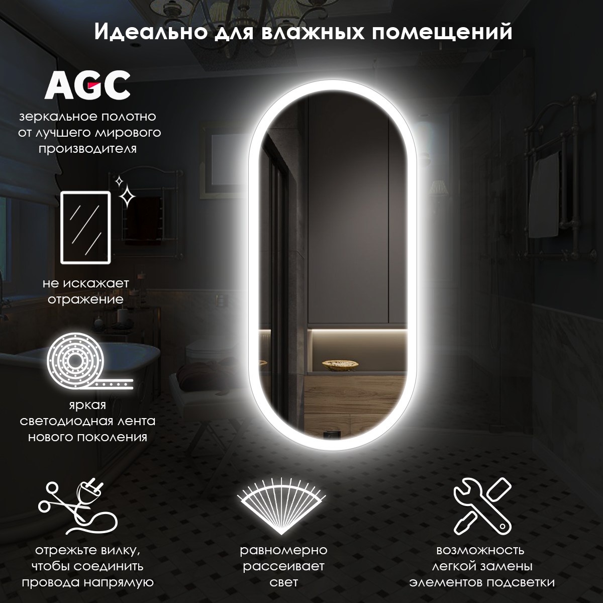 Зеркало для ванной Maskota Elen с нейтральной фронтальной подсветкой, сенсор, диммер, подогрев, IP44, 90х40 см интересное: