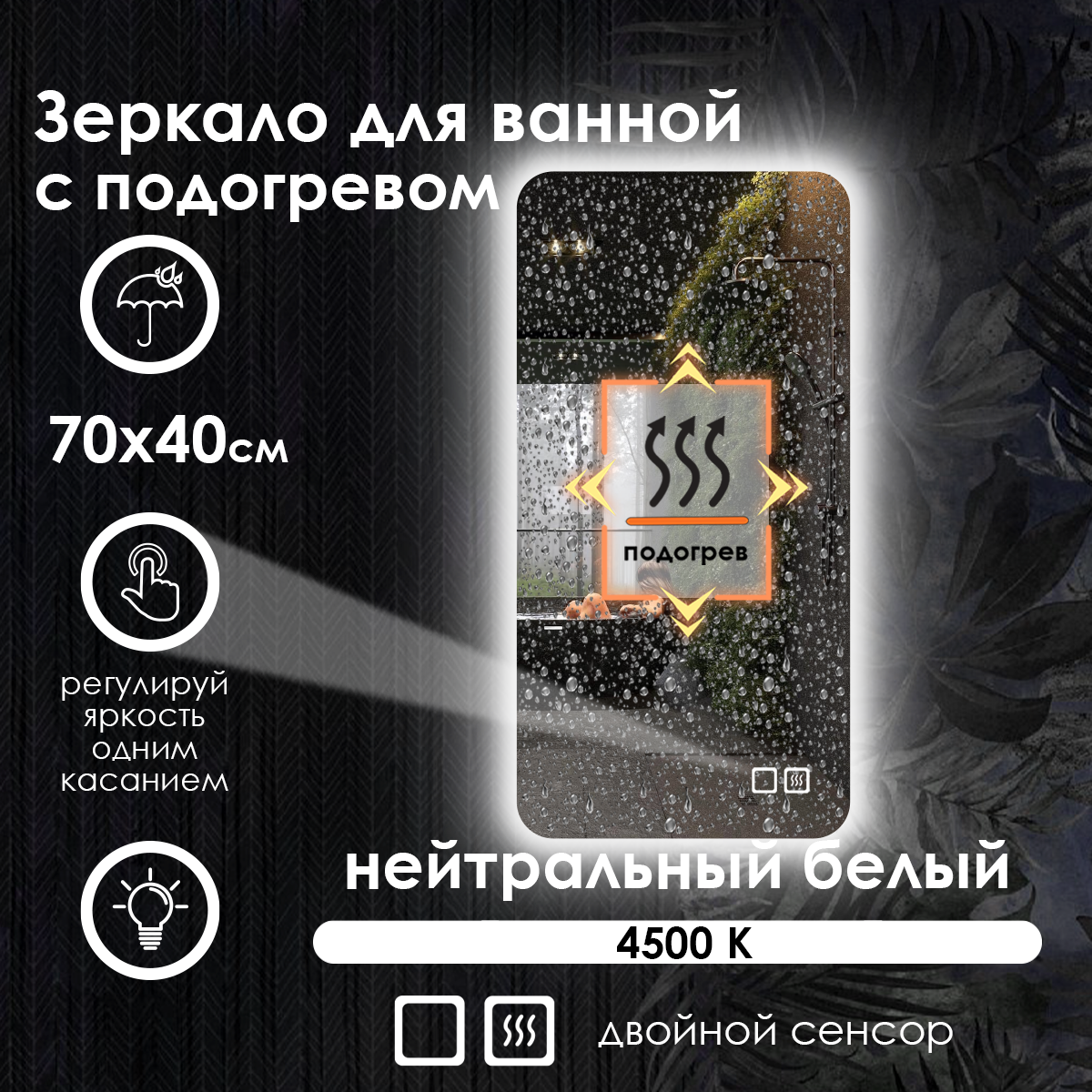 СохранитьЗеркало настенное Maskota для ванной прямоугольное скругленное, с парящей подсветкой на стену, подогрев, 70х40 см интересное: