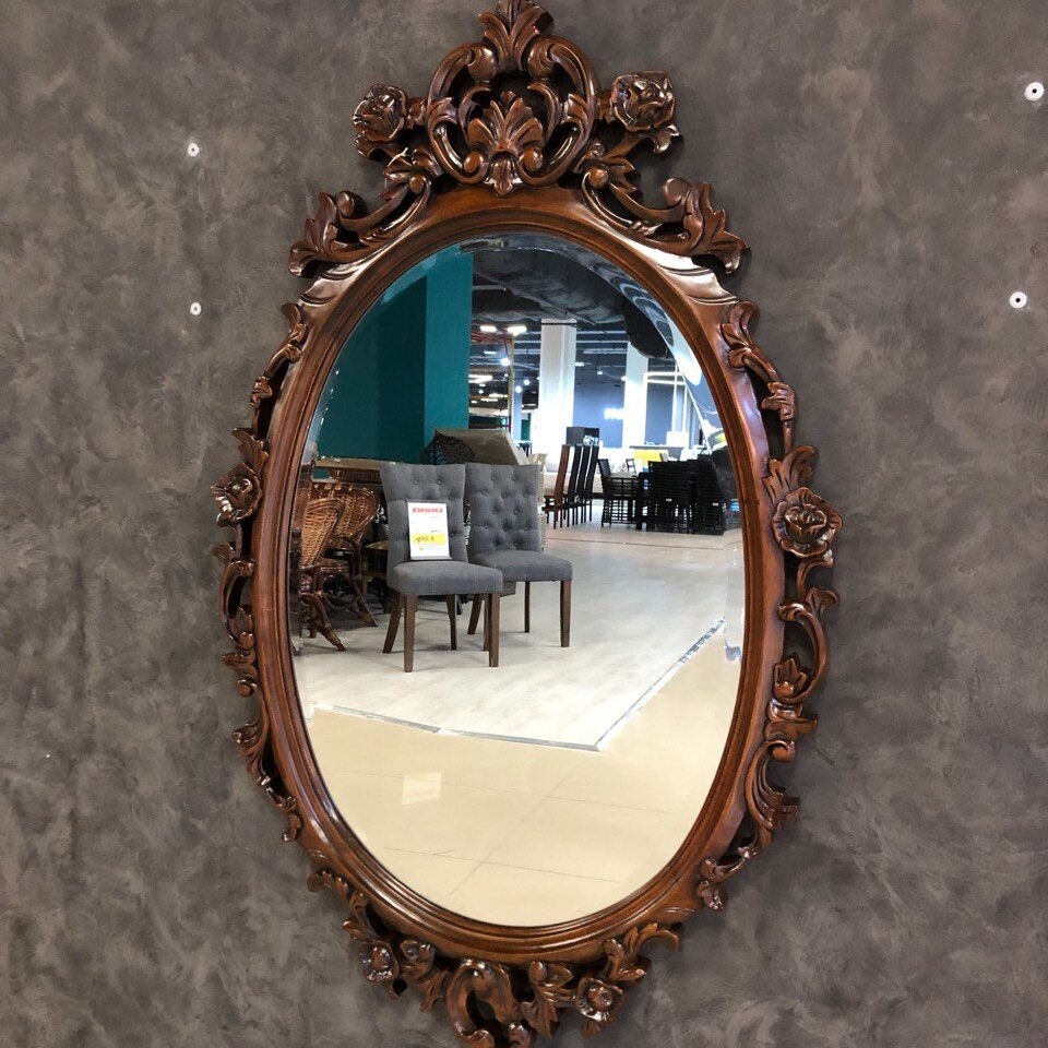 Интерьерное зеркало в резной раме из красного дерева (mahogany wood), цвет орех NAA (светло-коричневый)