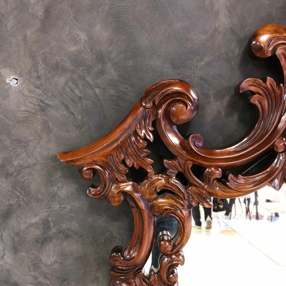 Интерьерное зеркало в резной раме из красного дерева (mahogany wood), цвет орех NAA (светло-коричневый)
