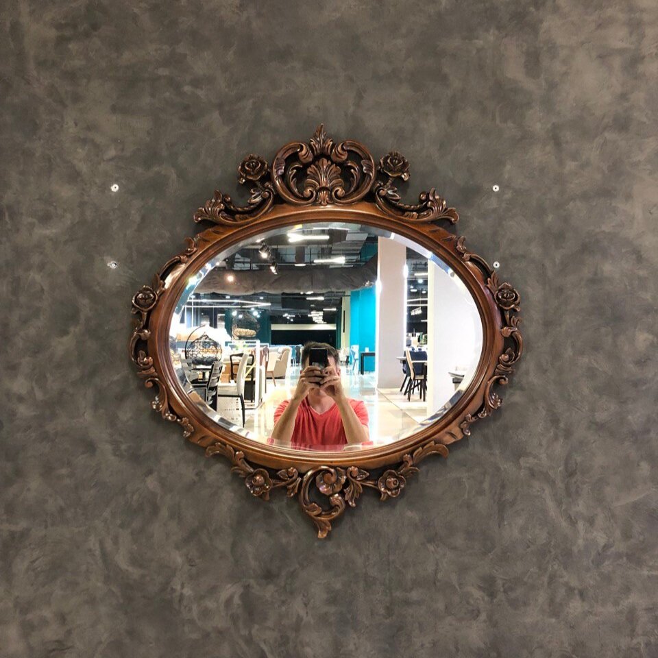 Интерьерное зеркало в резной раме из красного дерева (mahogany wood), цвет орех NAA (светло-коричневый)