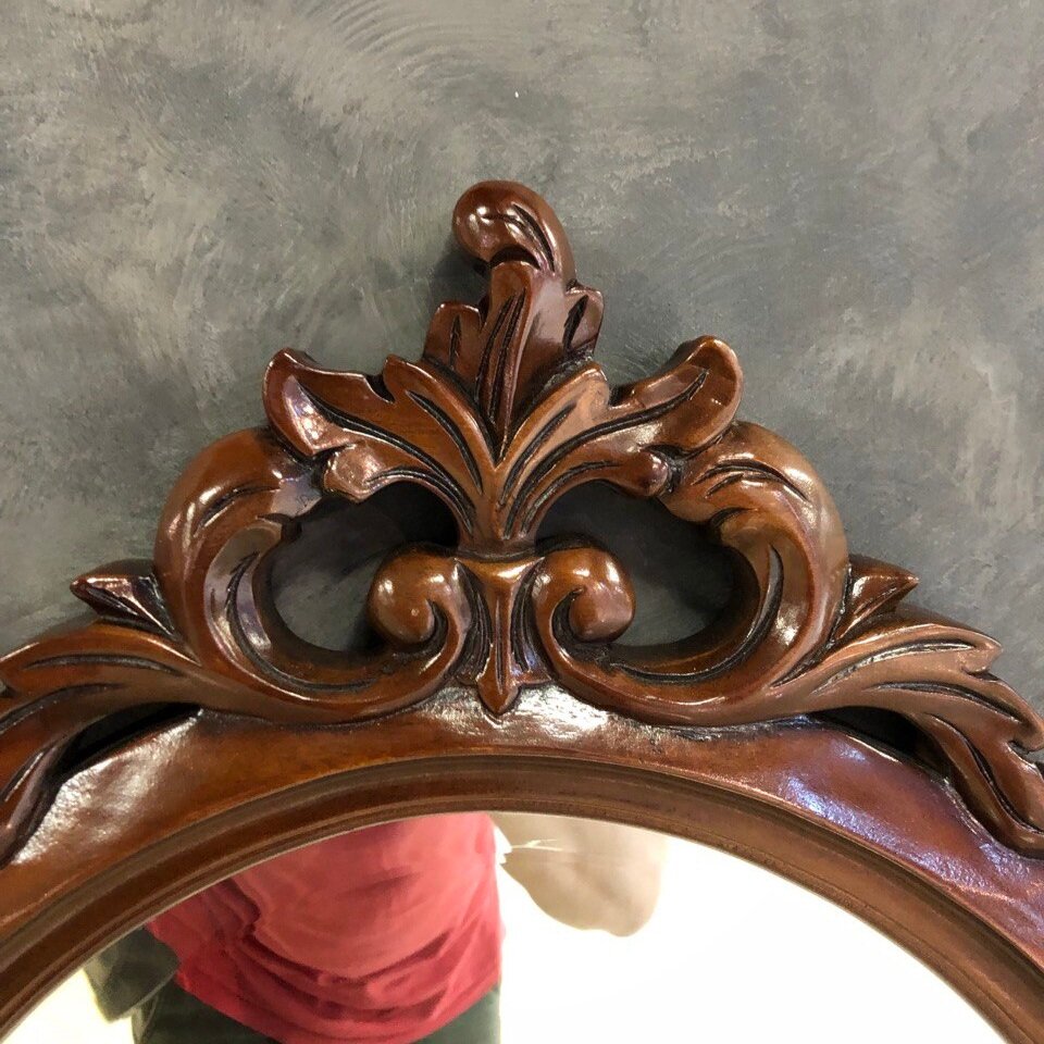 Интерьерное зеркало в резной раме из красного дерева (mahogany wood), цвет орех NAA (светло-коричневый)