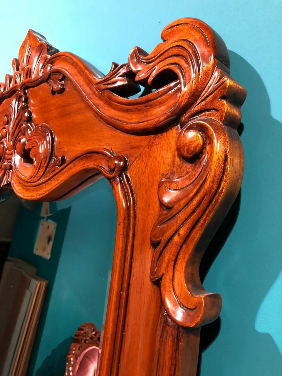 СохранитьИнтерьерное зеркало в резной раме из красного дерева (mahogany wood), цвет орех NAA (светло-коричневый) интересное: