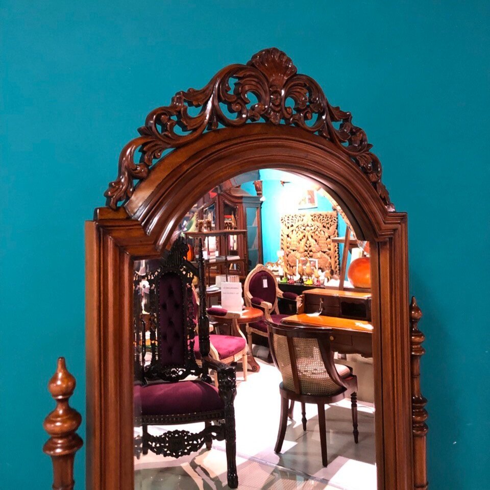 Интерьерное зеркало в резной раме из красного дерева (mahogany wood), цвет орех NAA (светло-коричневый)