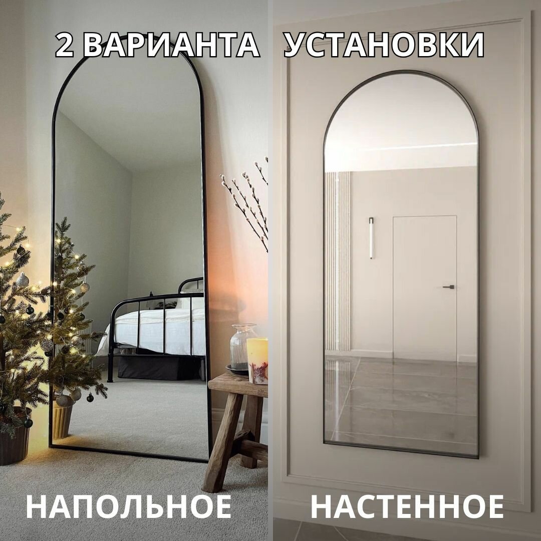Арочное зеркало в черной металлической раме 183х83 арка напольное