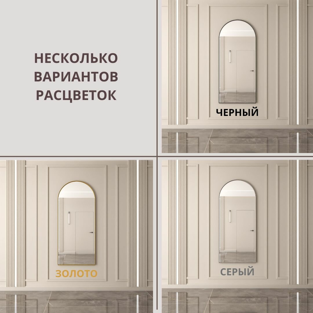 Арочное зеркало в черной металлической раме 183х83 арка напольное