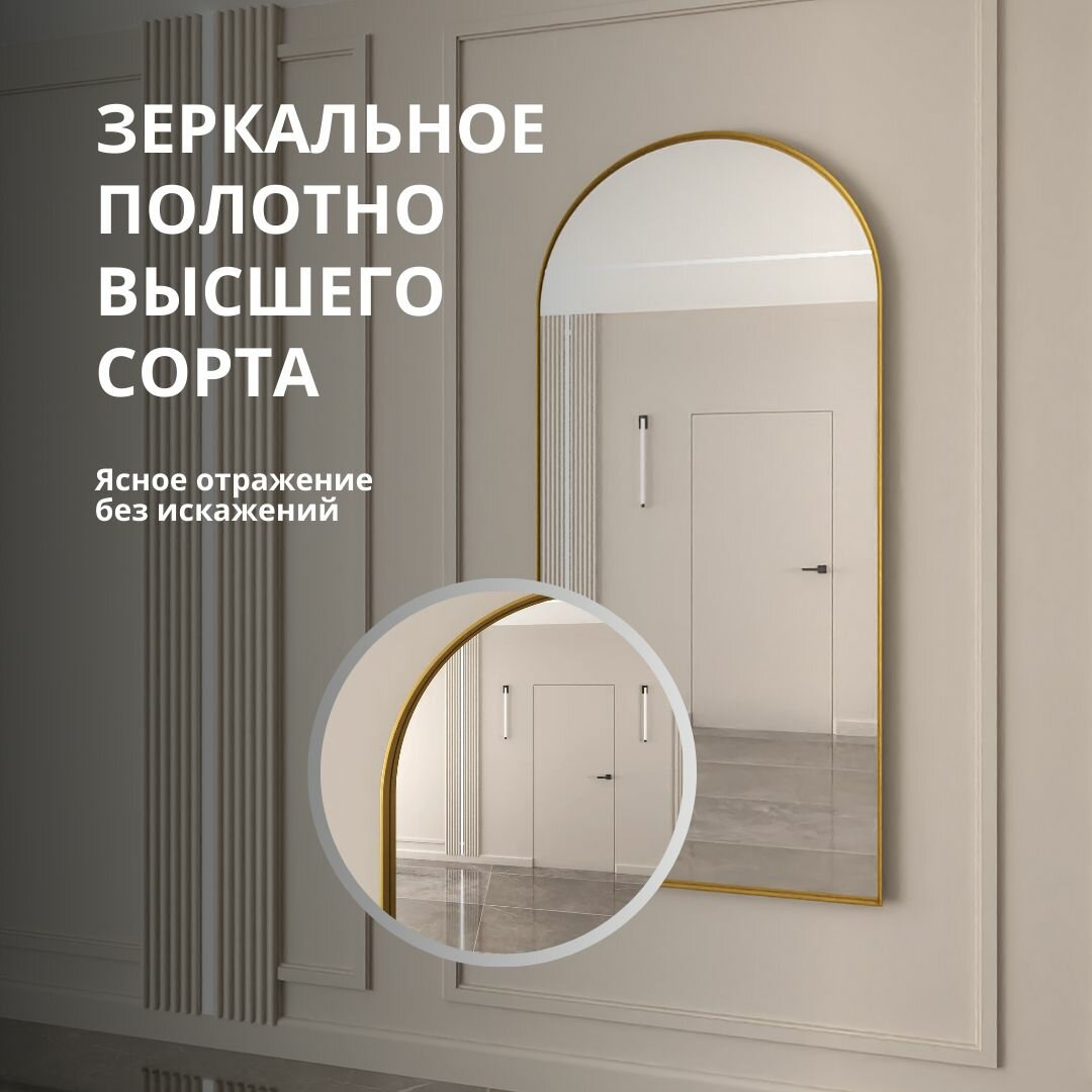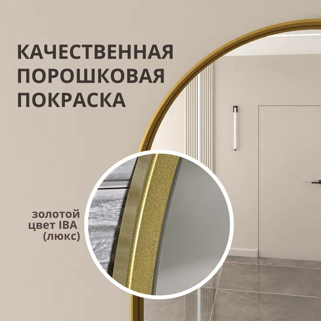 Арочное зеркало IBA в золотой металлической раме 173х73 арка