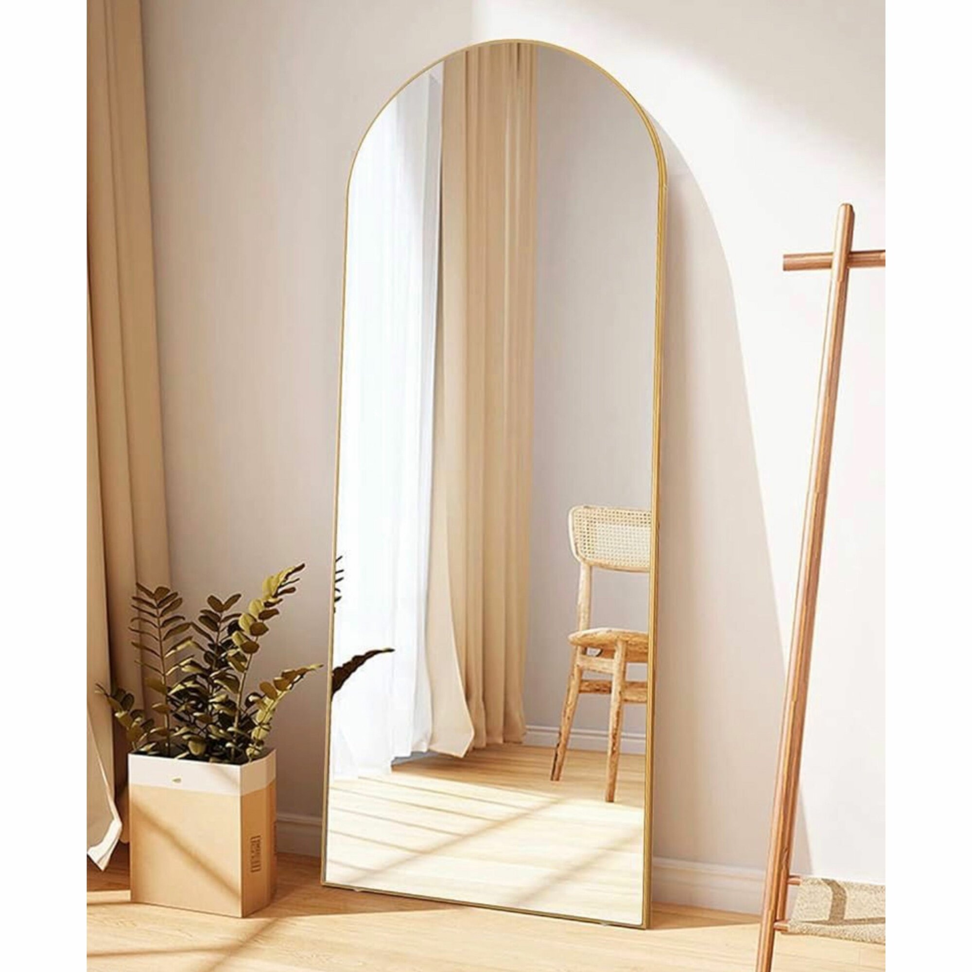 Арочное зеркало в металлической раме золотого цвета 200х80 см