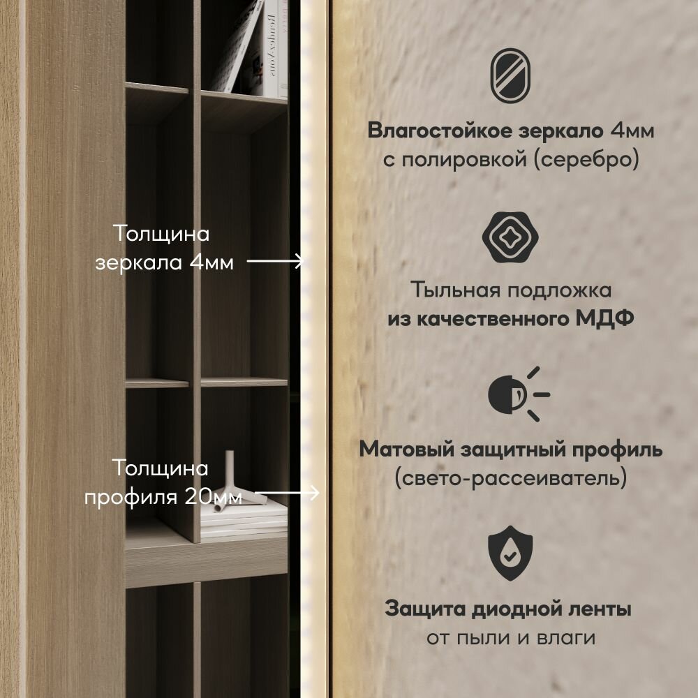 GENGLASS Зеркало настенное с тёплой подсветкой NOLVIS NF LED L 180x60 см, с сенсором