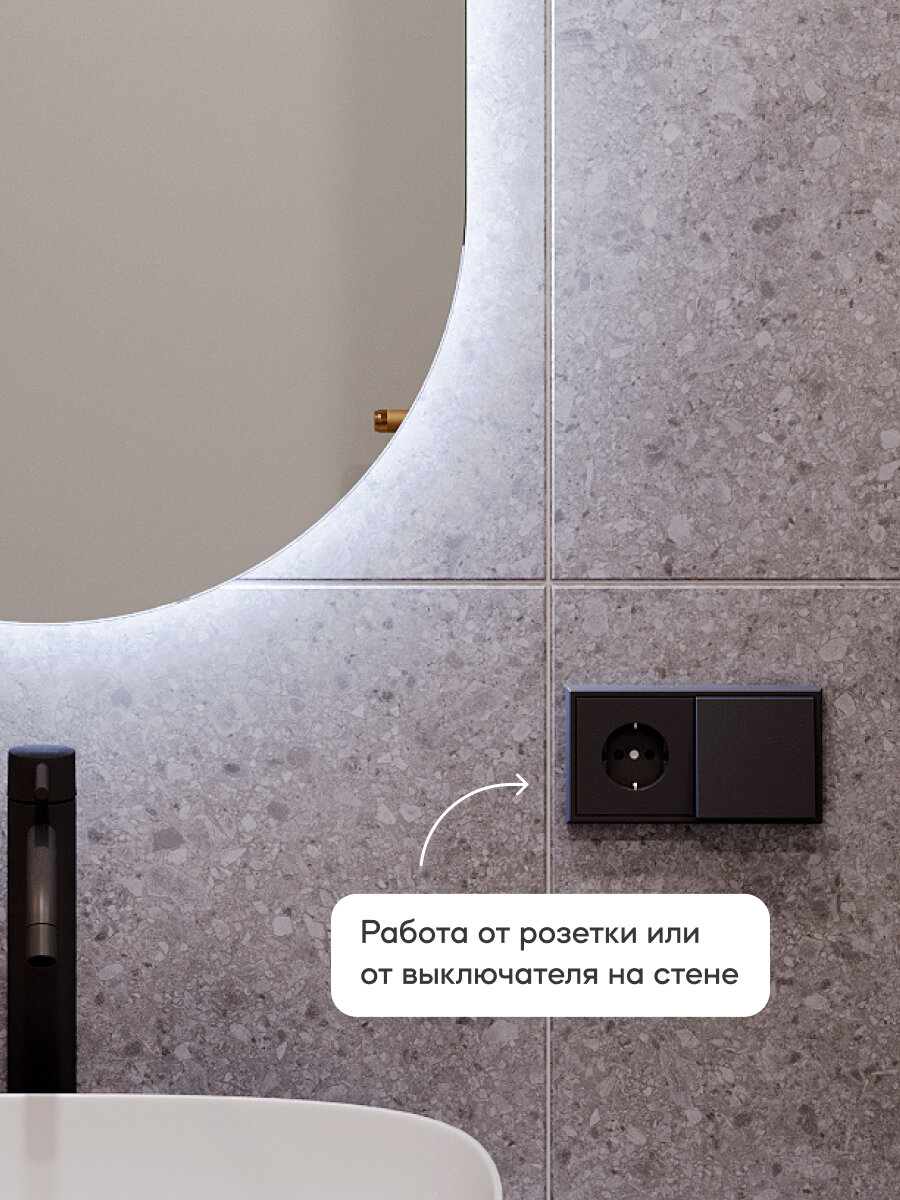 Зеркало настенное для ванной КерамаМане 70*100 см с холодной подсветкой 6000 К с сенсорной кнопкой