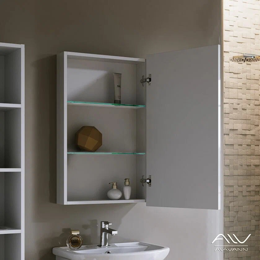 Зеркало-шкаф для ванной Alavann Vittoria 55-01, 55 см, влагостойкий, без подсветки, левый/правый, белый интересное:
