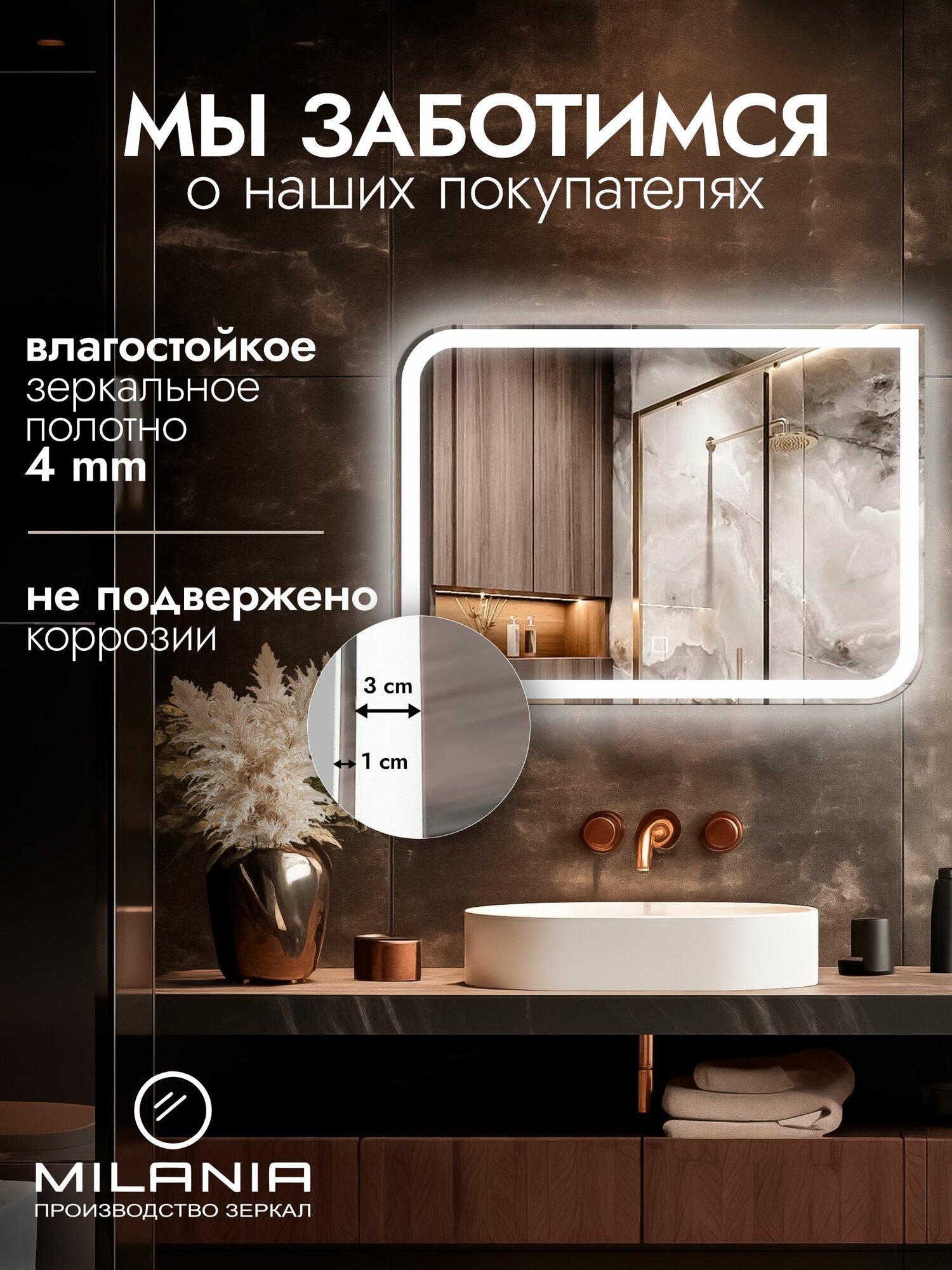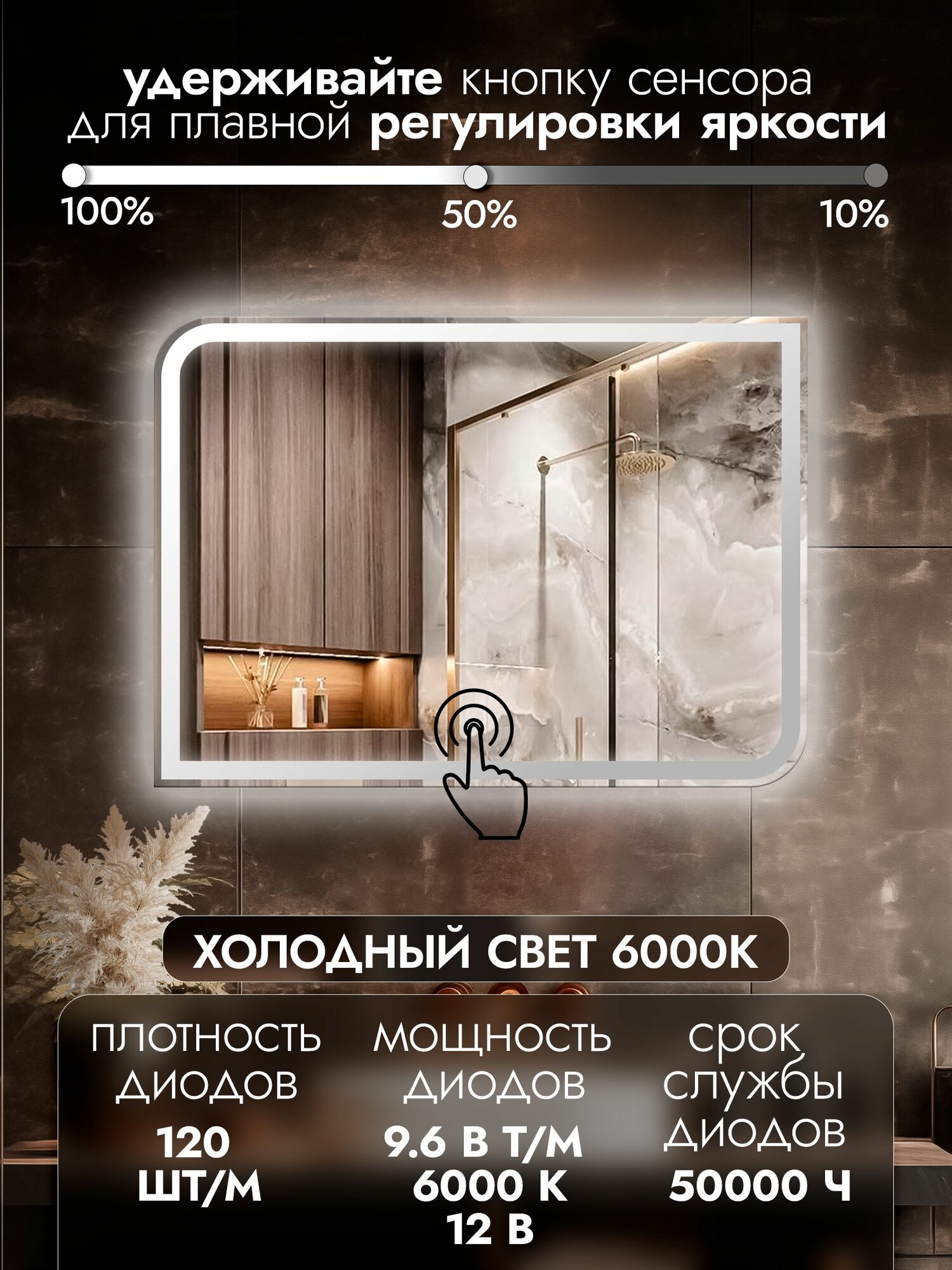 СохранитьНастенное зеркало с подсветкой в ванную Montreal 80х60 см (ореольная подсветка, холодный свет 6000К, сенсорное управление, прямоугольное зеркало для ванной) интересное: