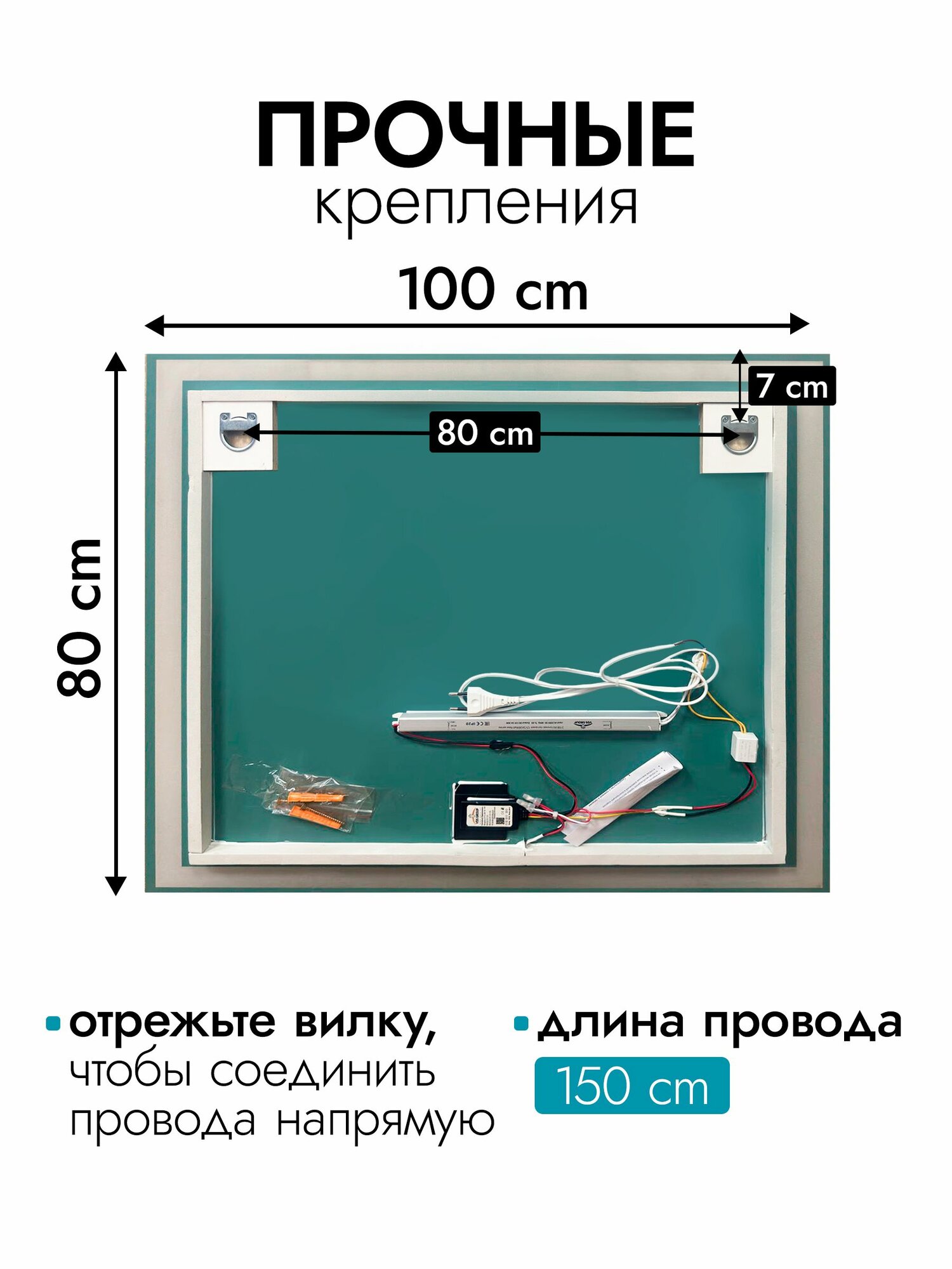 СохранитьНастенное зеркало с подсветкой в ванную Montreal 100х80 см (ореольная и фронтальная подсветка, холодный свет 6000К, сенсорное управление, прямоугольное зеркало для ванной) интересное: