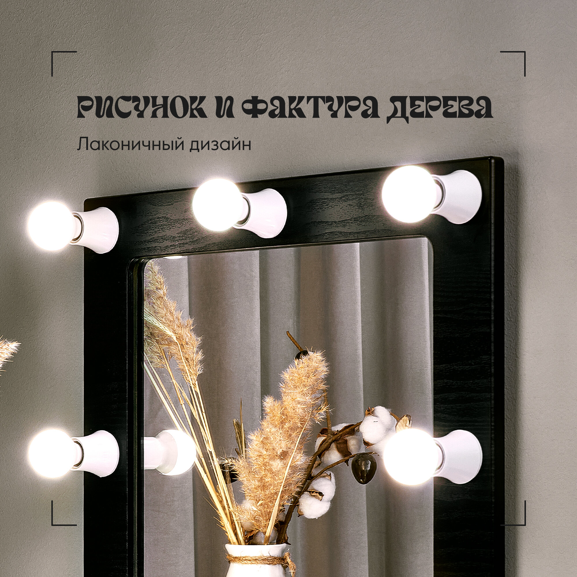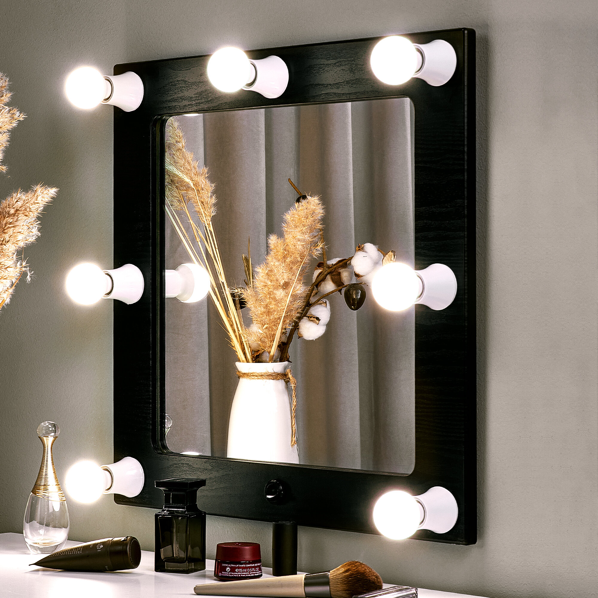 Гримерное зеркало Postermarket 129, с подсветкой, 52x50 см, черное интересное: