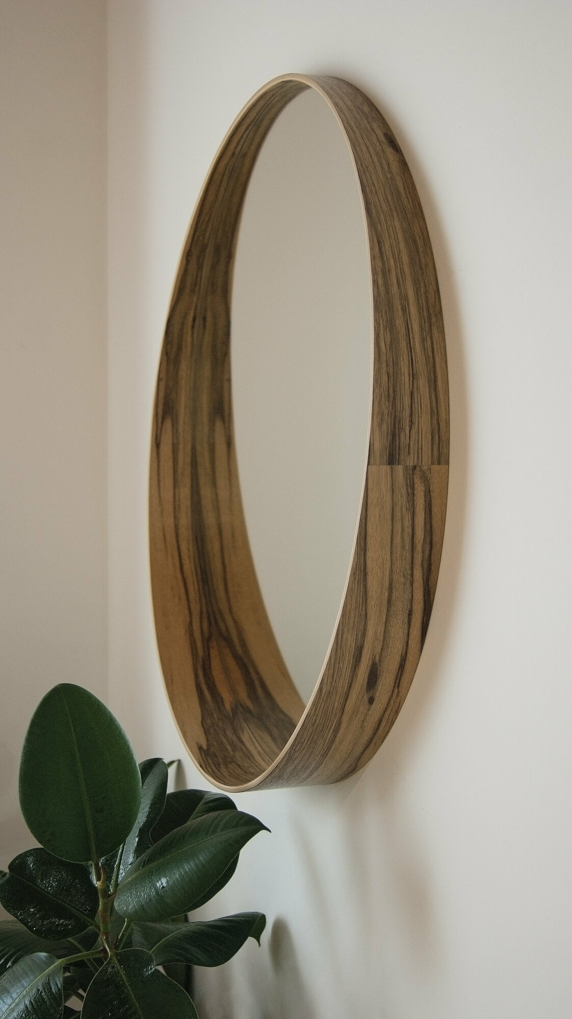 Большое настенное круглое интерьерное зеркало в деревянной раме 90 х 90 см интересное: