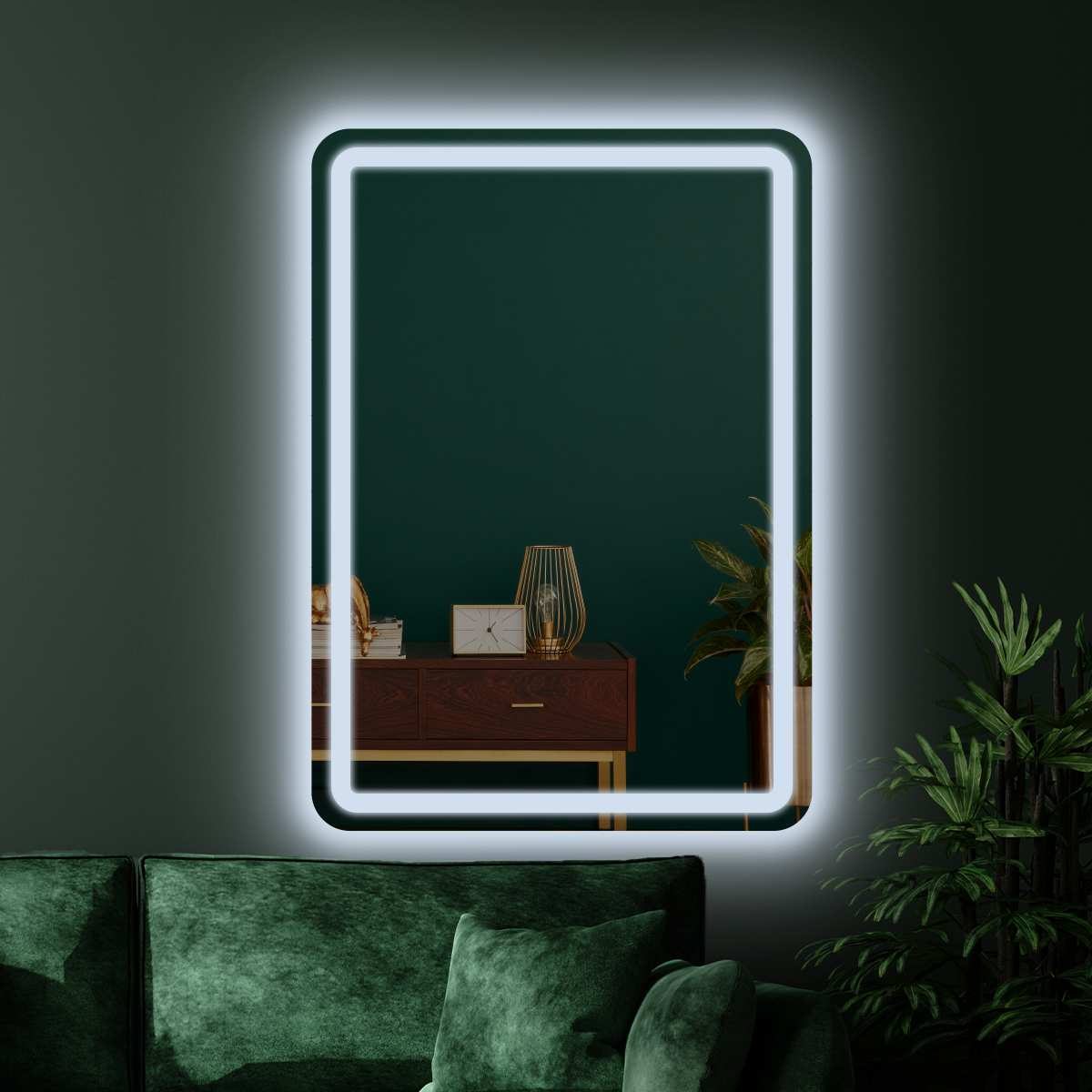 Зеркало настенное Maskota для ванной квадратное скругленное, с фронтальной подсветкой в зеркальном полотне, 60х60 см