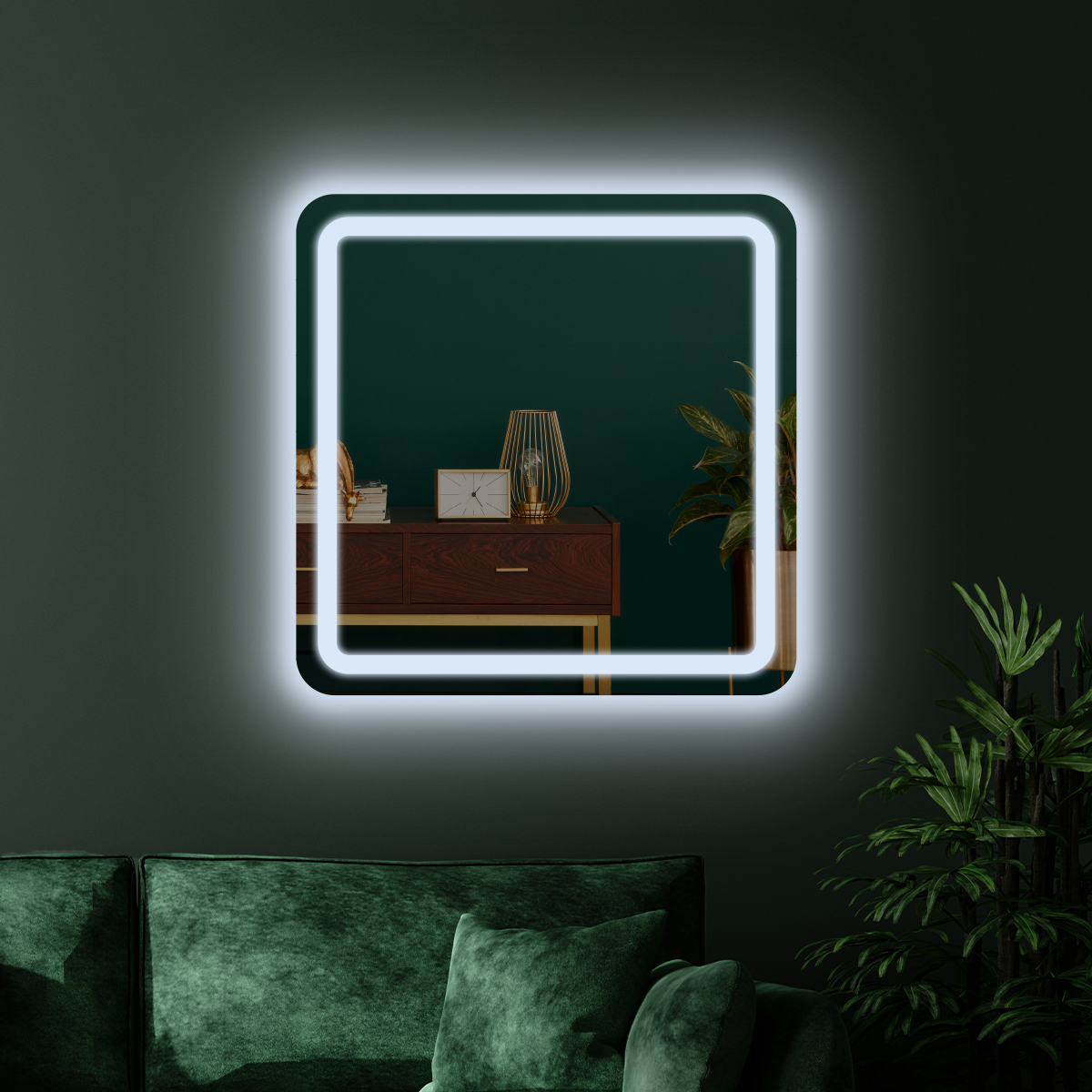 Зеркало настенное Maskota для ванной квадратное скругленное, с фронтальной подсветкой в зеркальном полотне, 70х70 см