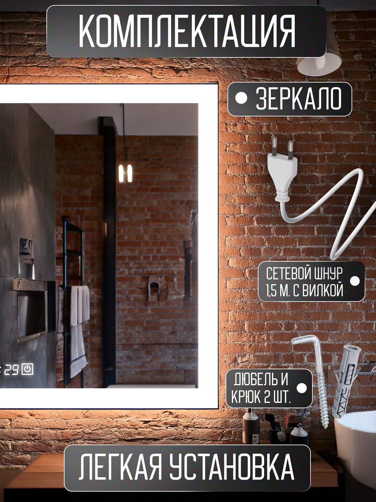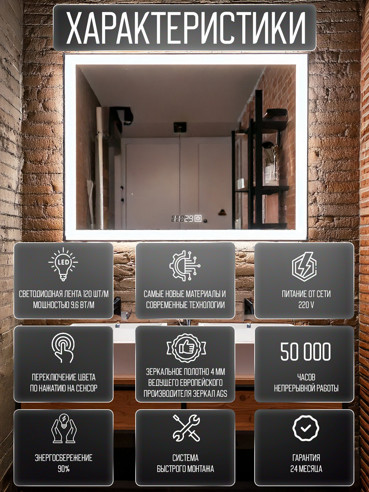 Зеркало для ванной "Mirror Arts", фоновая подсветка, сенсорное управление, настенное крепление интересное: