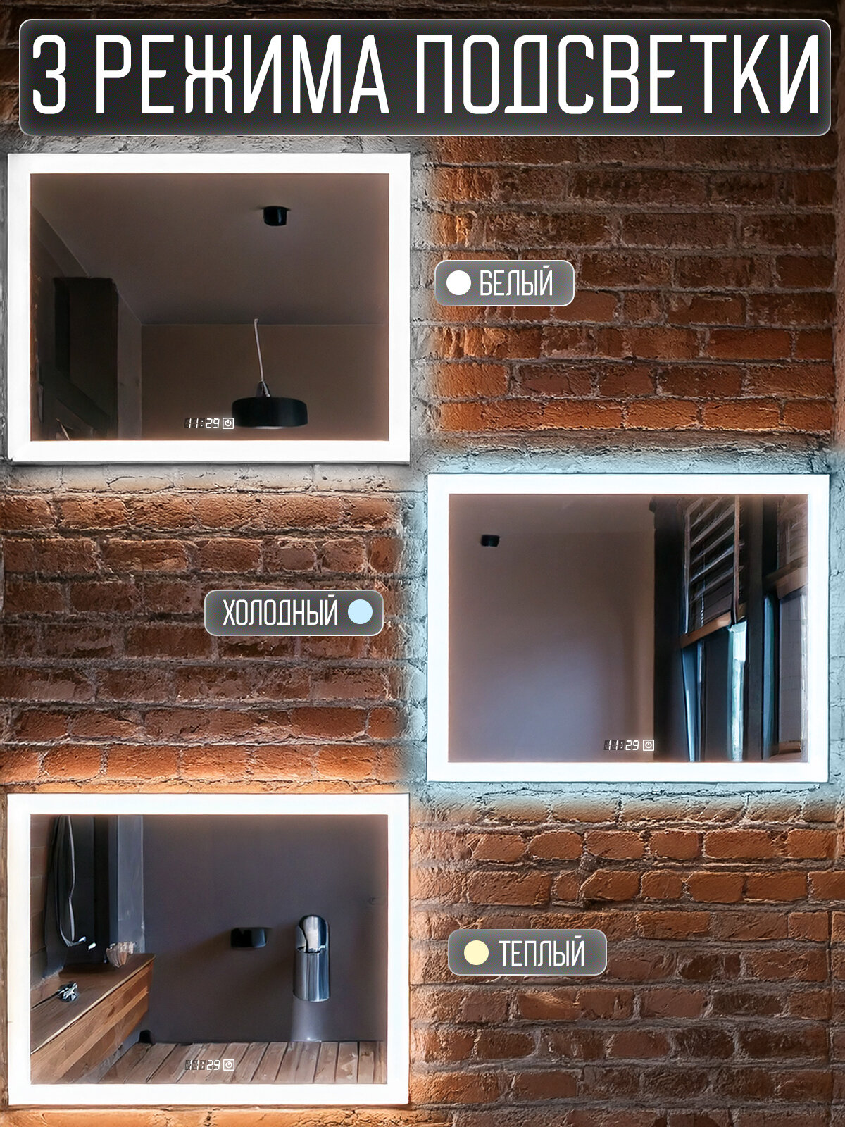 Зеркало настенное для ванной КерамаМане 70*100 см с холодной подсветкой 6000 К с сенсорной кнопкой