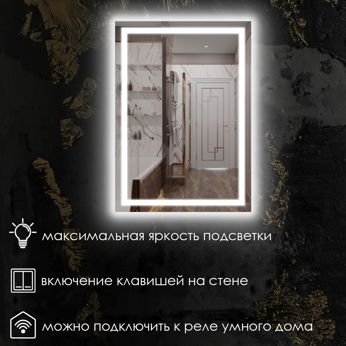 СохранитьЗеркало для ванной прямоугольное, фронтальная подсветка, нейтральный свет 4500K, подогрев, без сенсора, 80х50 см. интересное: