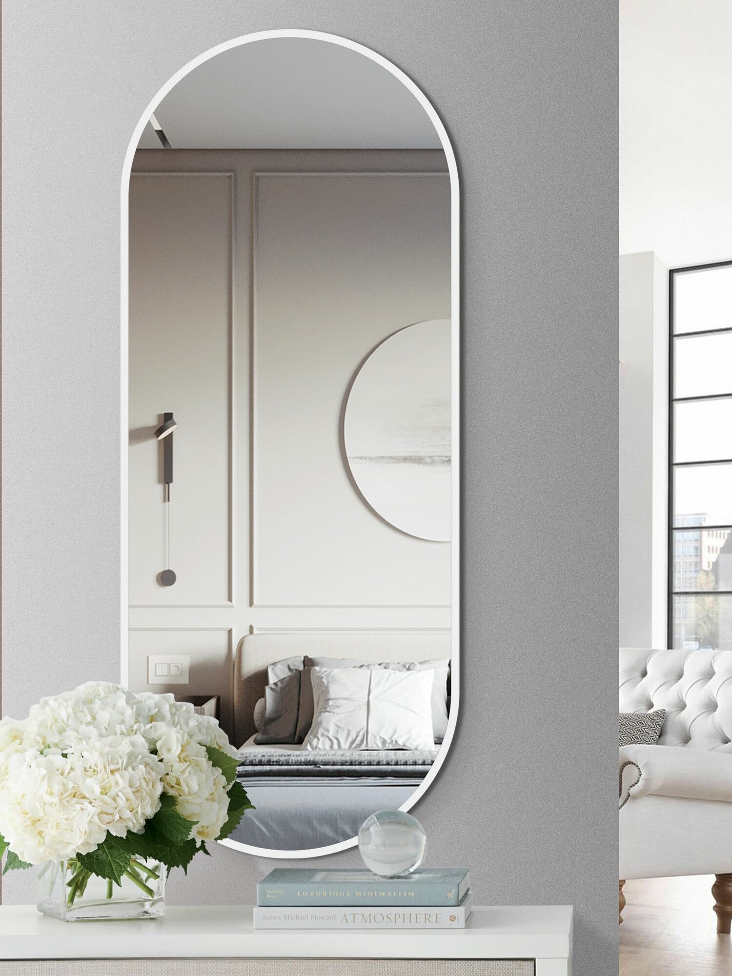 Настенное овальное зеркало с белой окантовкой 150x55 см Алмаз-Люкс