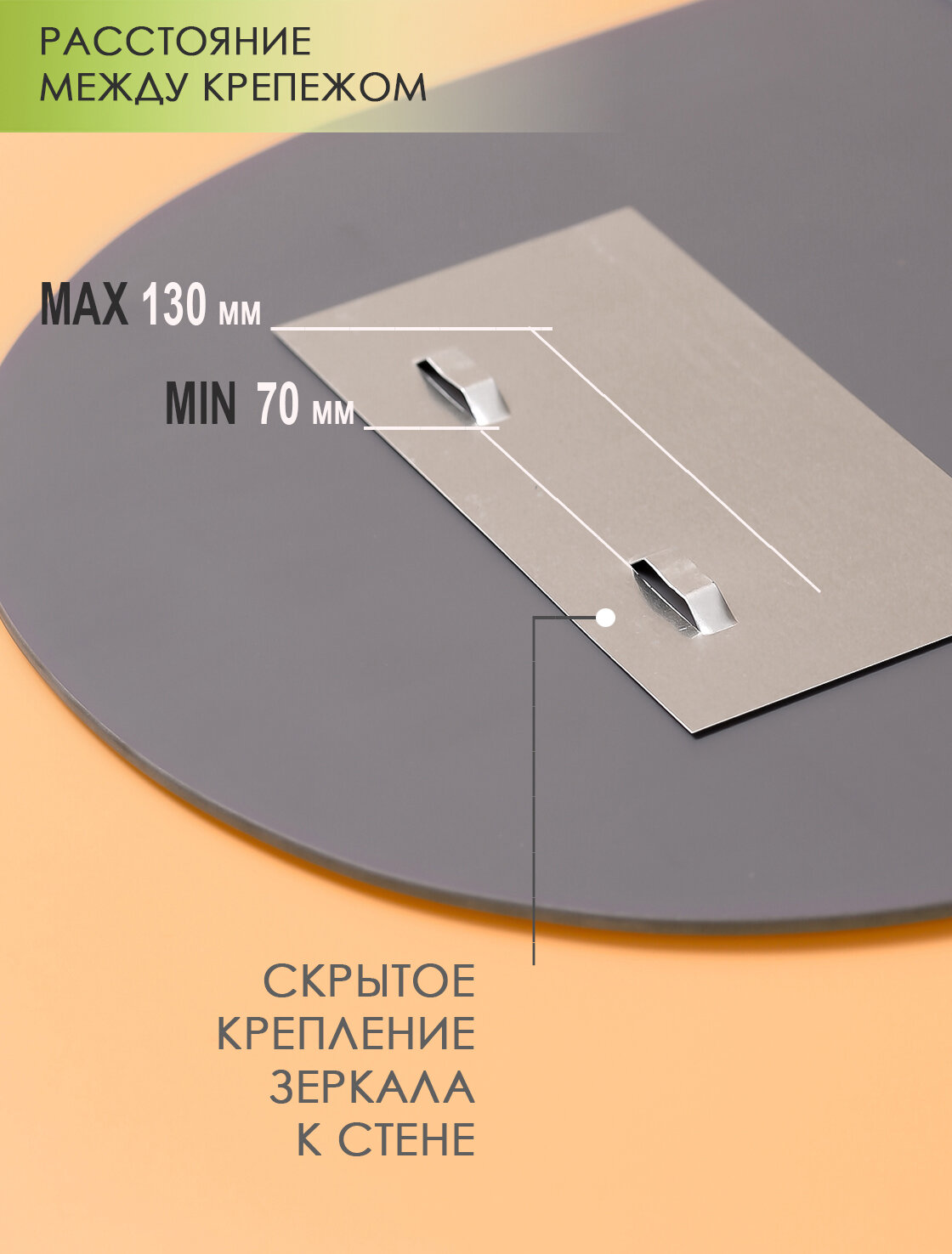 Зеркало интерьерное настенное с подсветкой парящее полукруглое левое для ванной