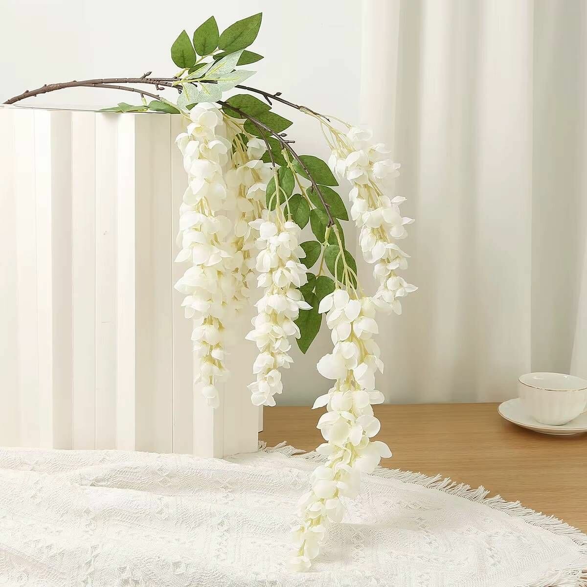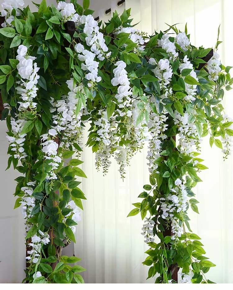 Глициния искусственная пышная лиана для украшения декора сада арок кафе белая 6 веток