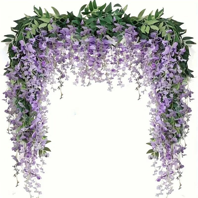 Глициния искусственная пышная лиана для украшения декора сада арок кафе белая 6 веток