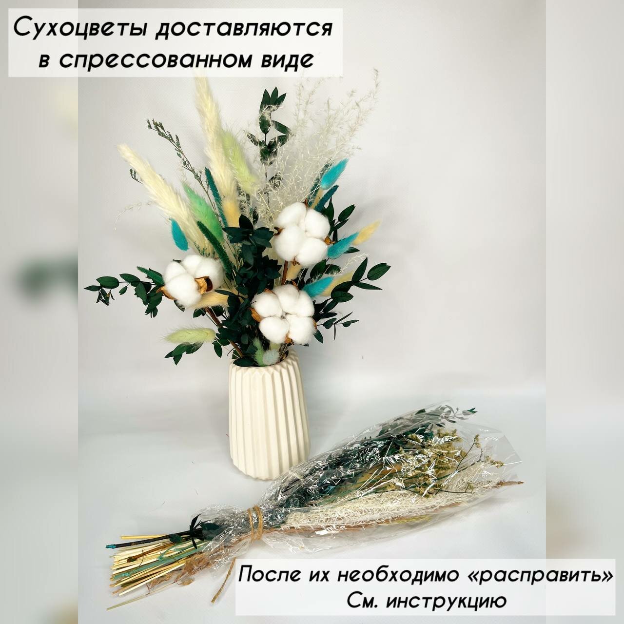 Сухоцветы для декора с вазой Букет сухоцветов Стабилизированные цветы Хлопок