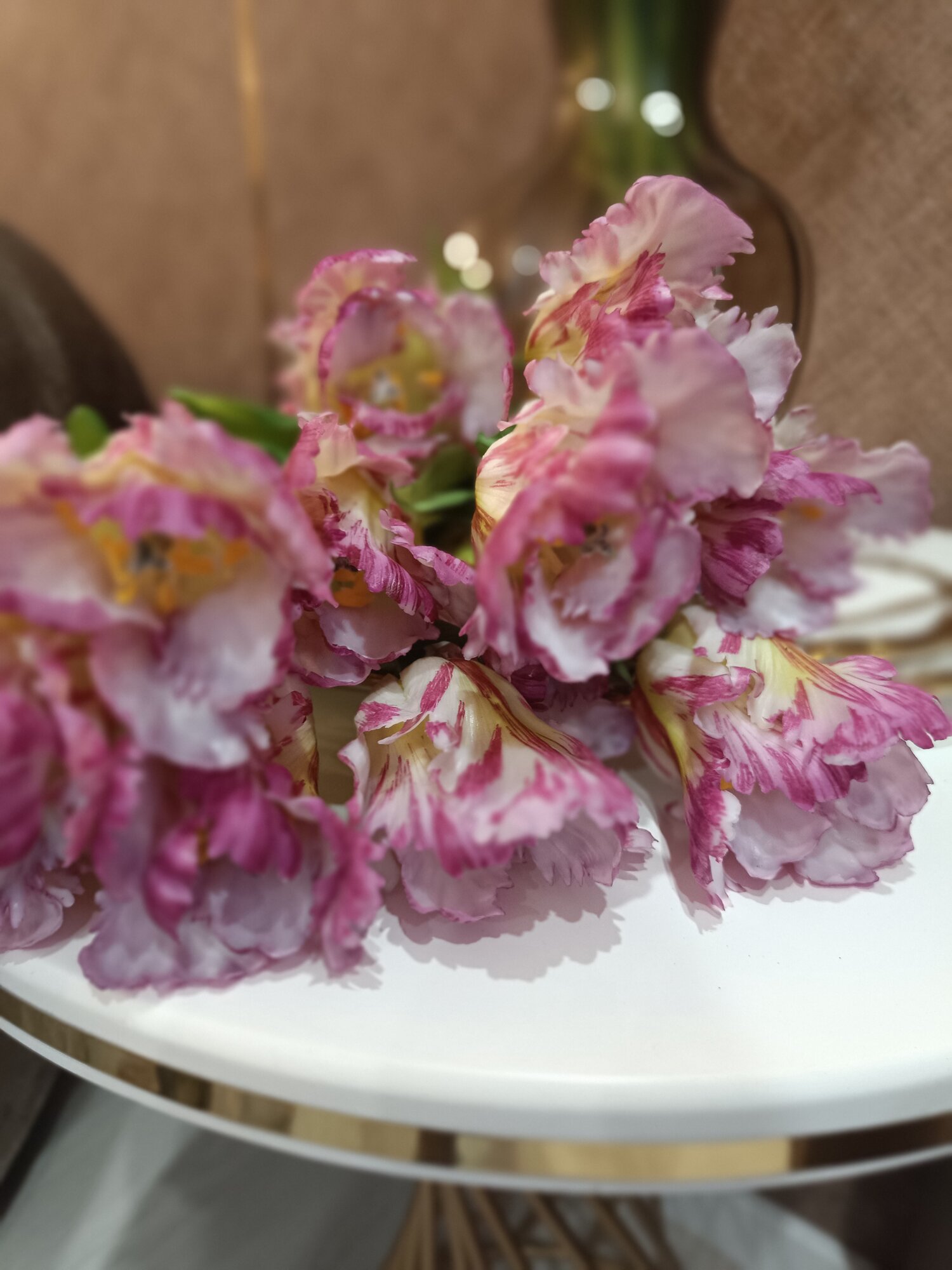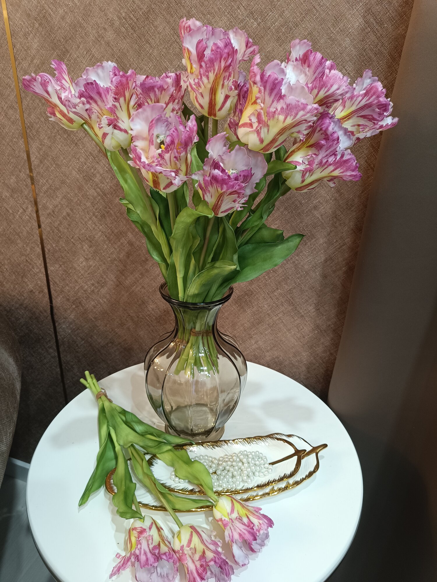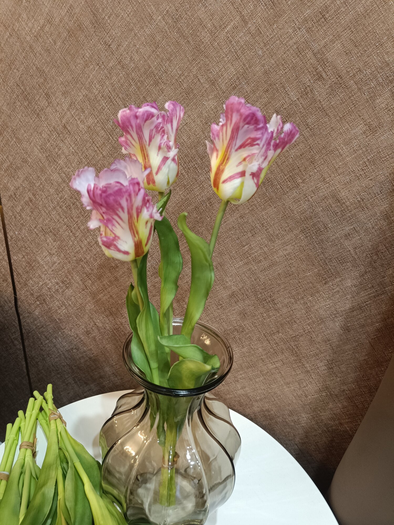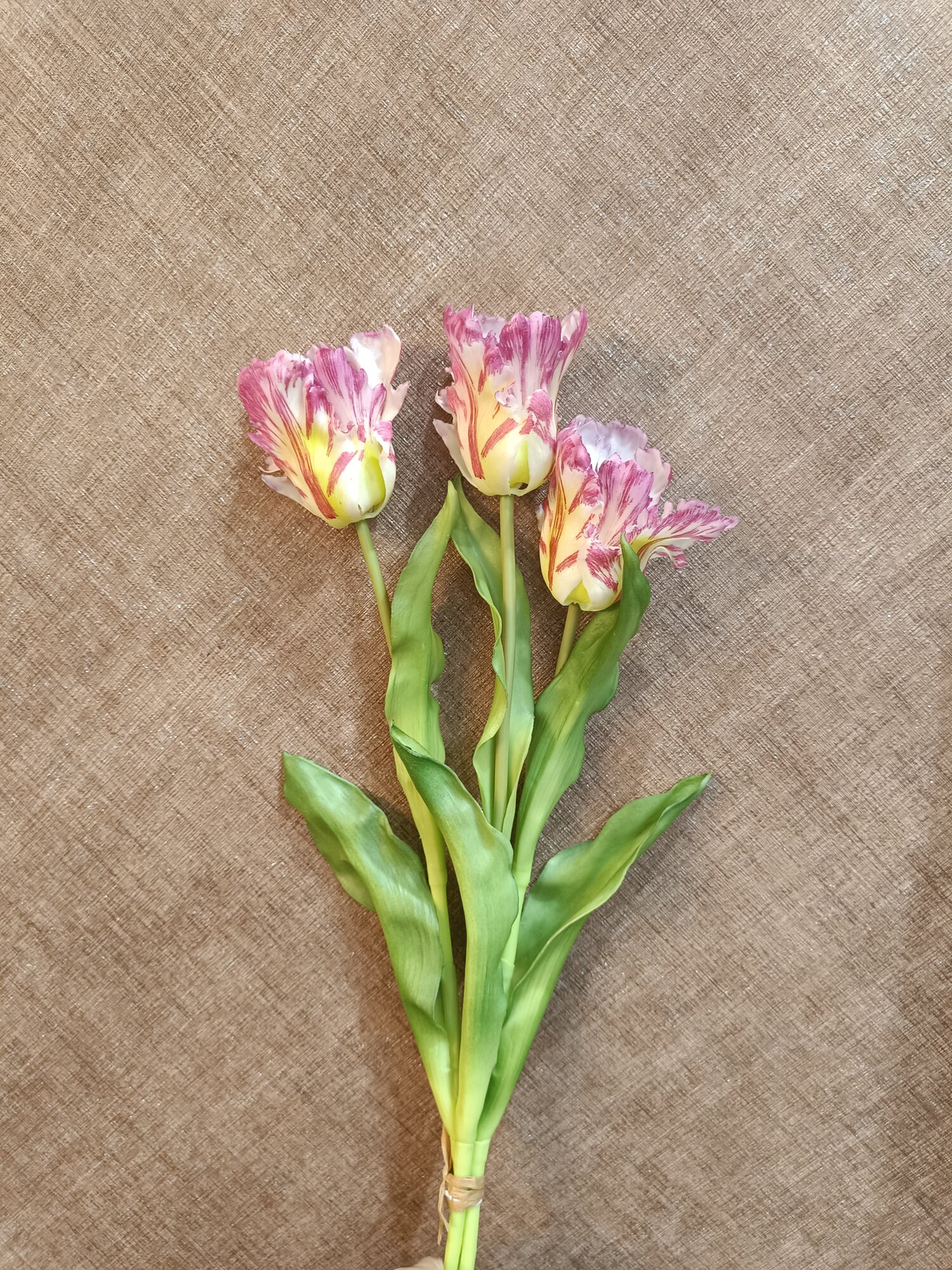 Тюльпаны искусственные из силикона Flo-boutique, букет из 3 цветков, высота 51 см, розовые пестрые