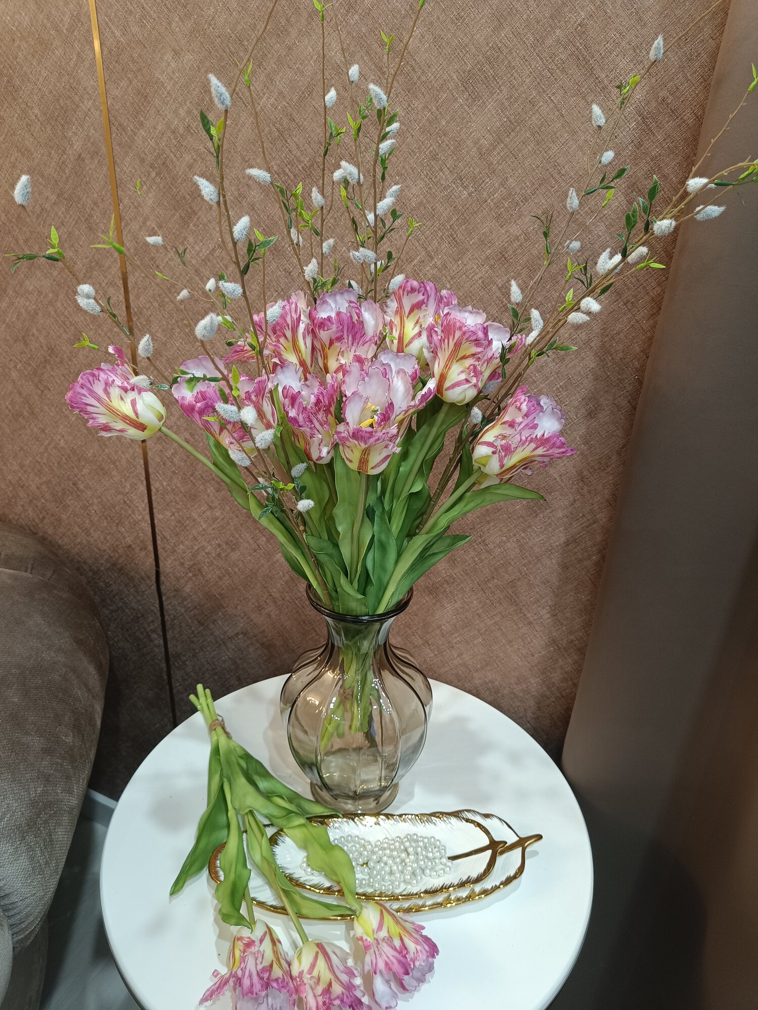 Тюльпаны искусственные из силикона Flo-boutique, букет из 3 цветков, высота 51 см, белые пестрые