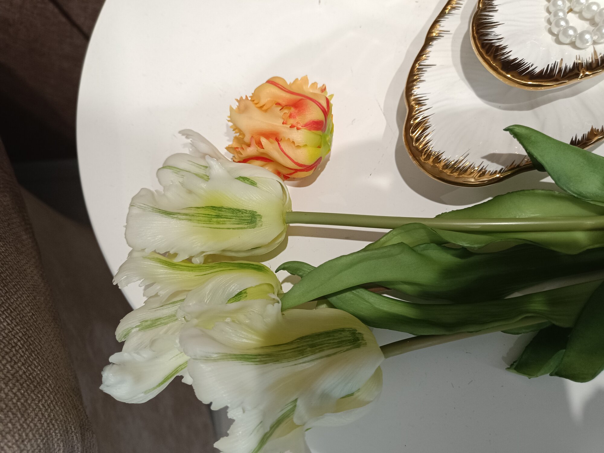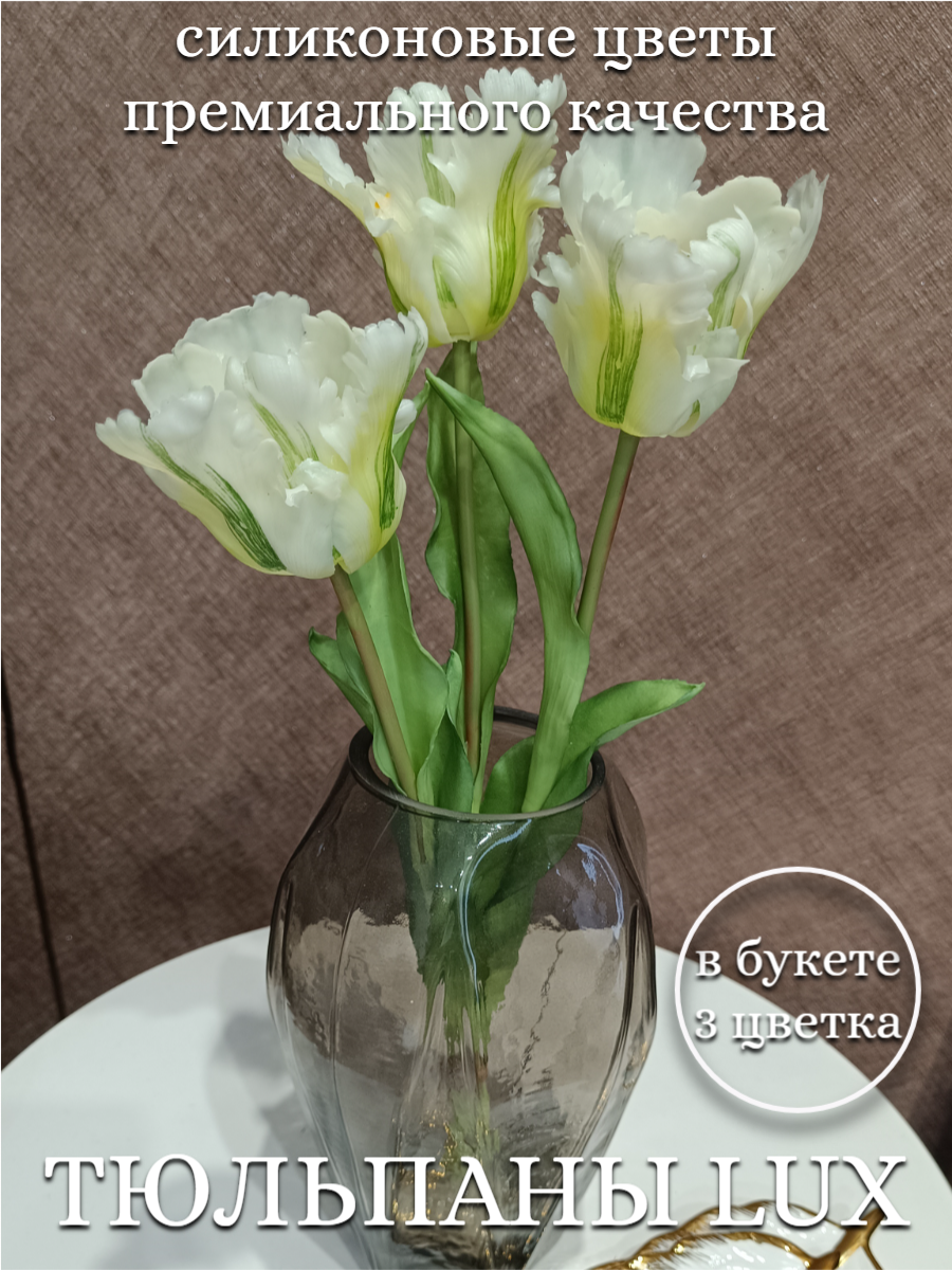СохранитьТюльпаны искусственные из силикона Flo-boutique, букет из 3 цветков, высота 51 см, белые пестрые интересное: