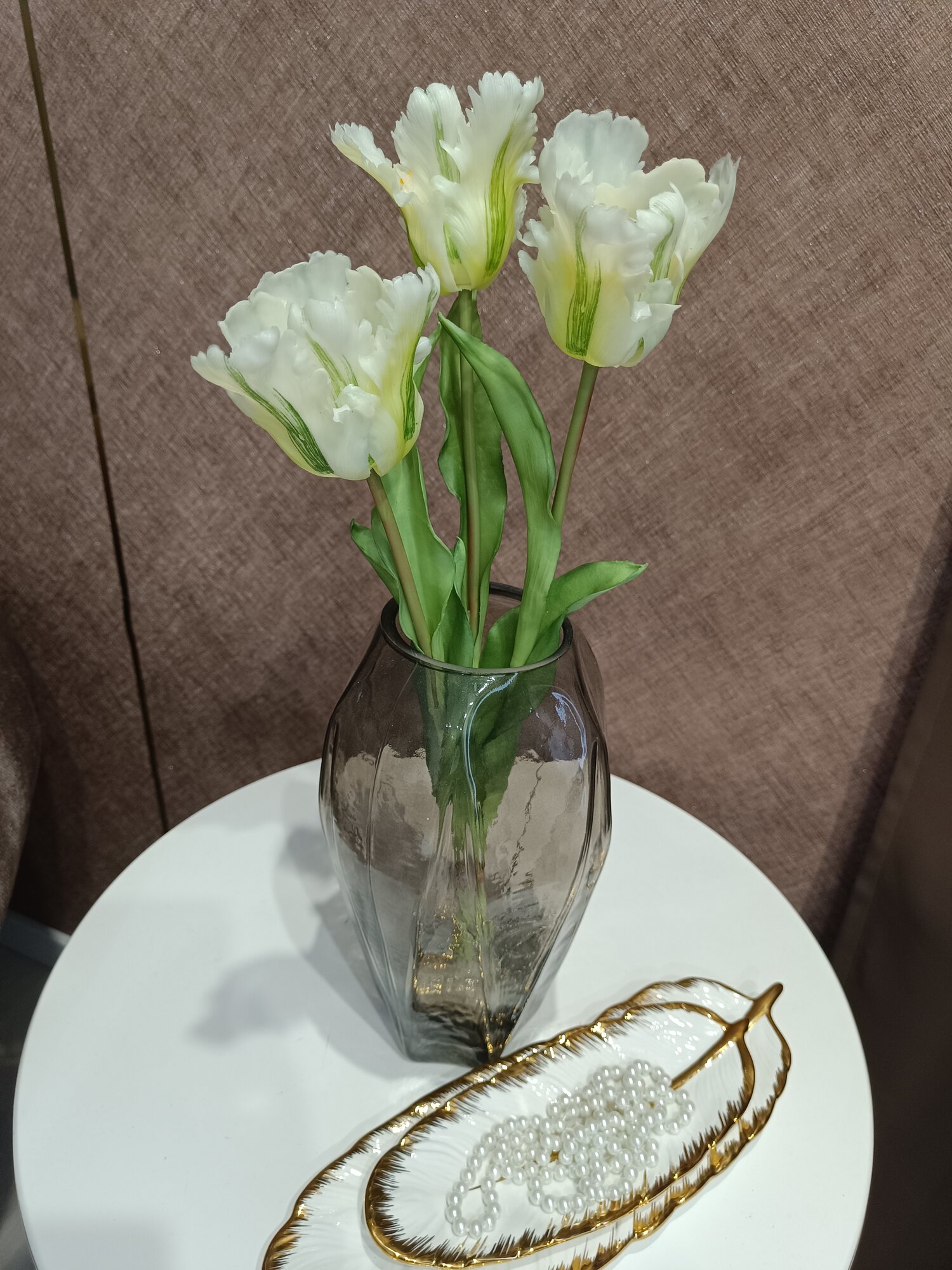 Купить Тюльпаны искусственные из силикона Flo-boutique, букет из 3 цветков, высота 51 см, белые пестрые