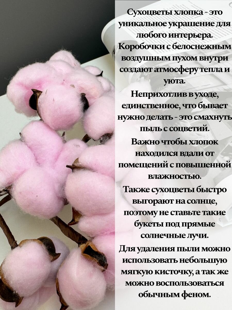 Ниже Вы можете прочитать отзывы на Сухоцветы для декора и творчества Хлопок розовый, ознакомится с подробными характеристиками, посмотреть интересные обзоры и фотографии на Сухоцветы для декора и творчества Хлопок розовый.