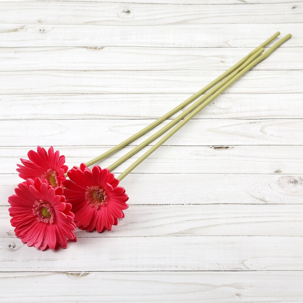 Купить Цветок искусственный Гербера 43 см малиновый, латекс - 3 штуки